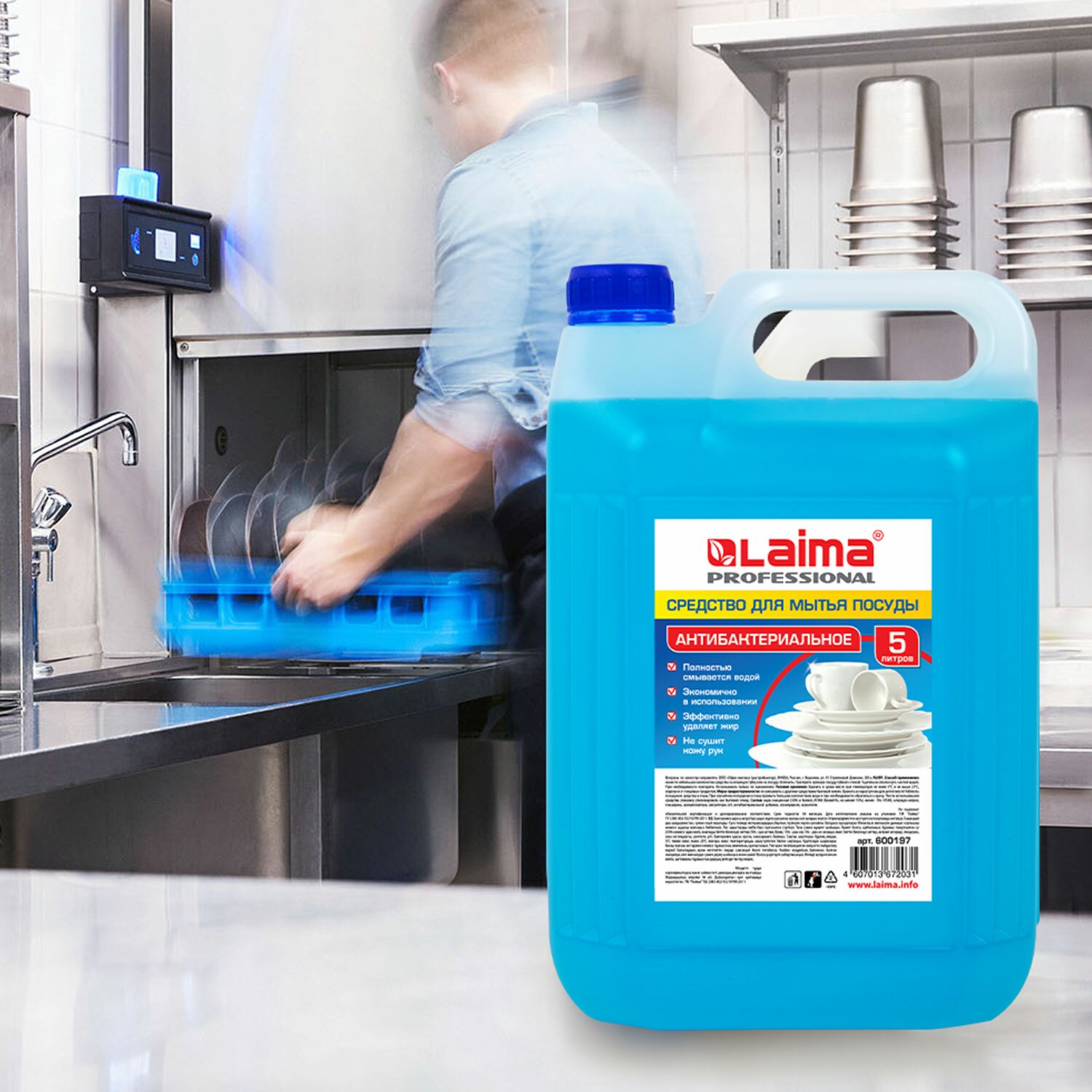 Средство для мытья посуды 5 л, ЛАЙМА PROFESSIONAL, антибактериальное, концентрат, 600197