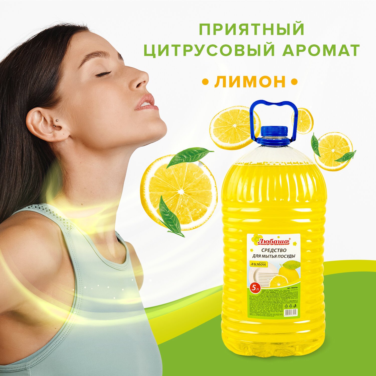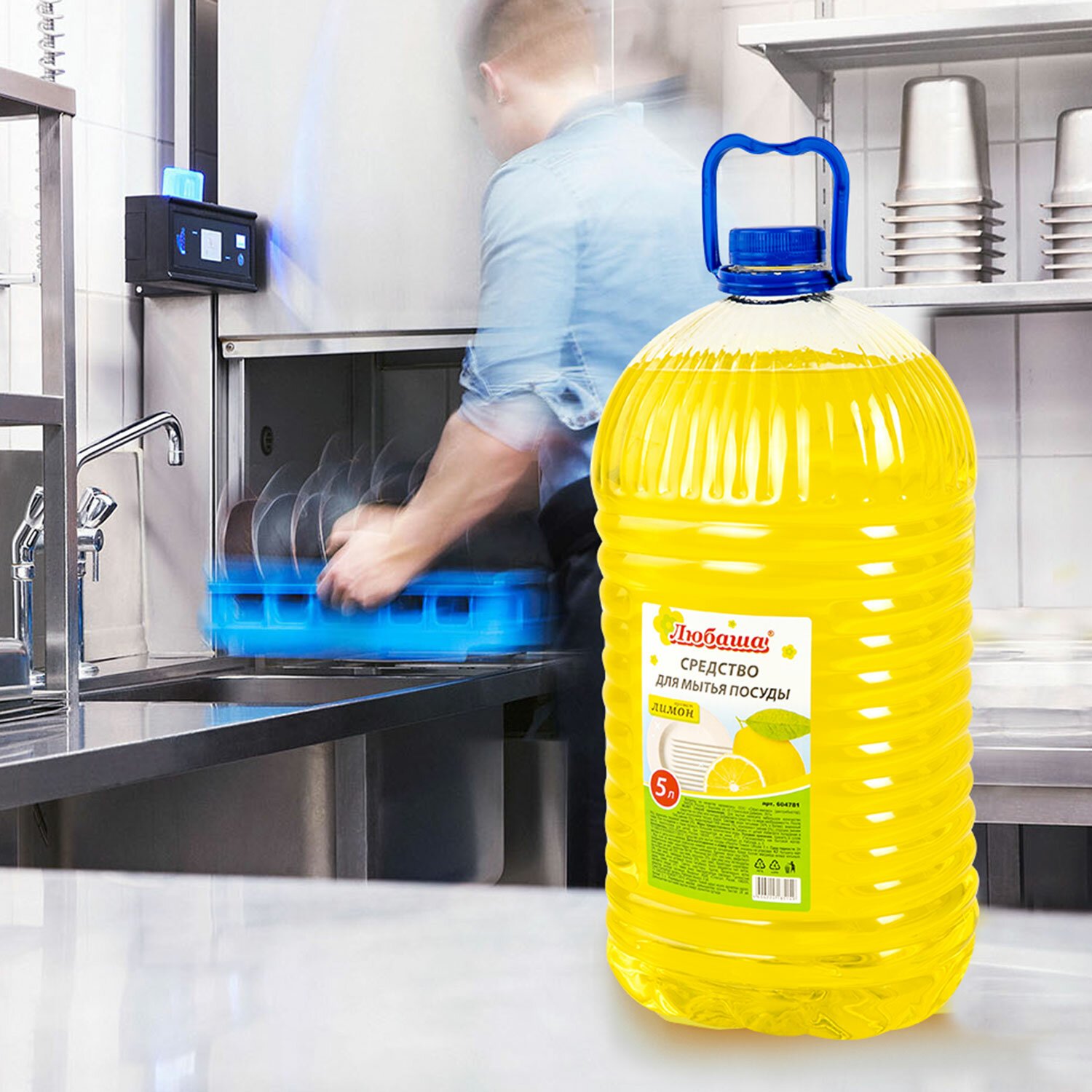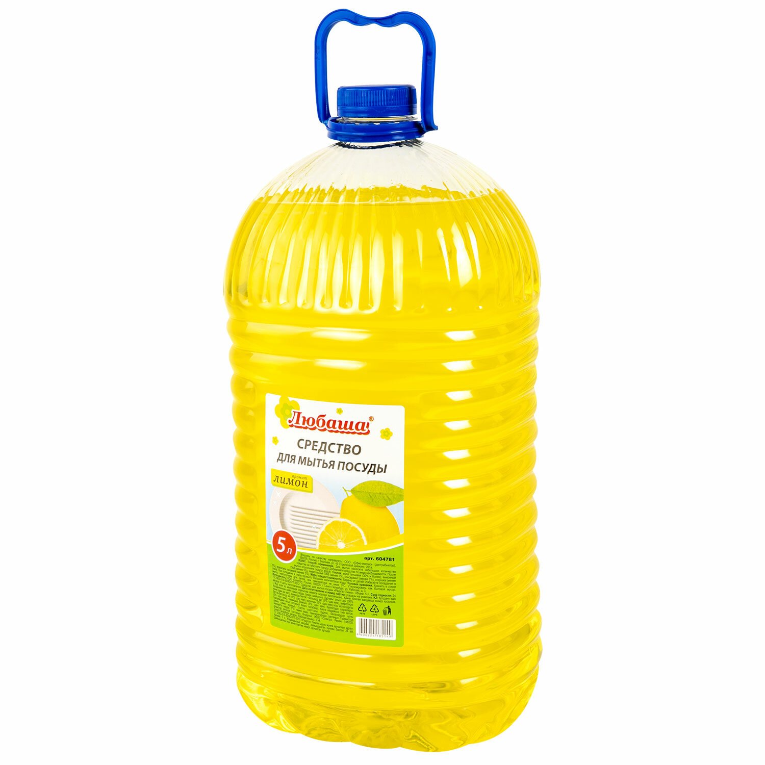 Средство для мытья посуды 5 л, ЛЮБАША "Лимон", ПЭТ, 604781