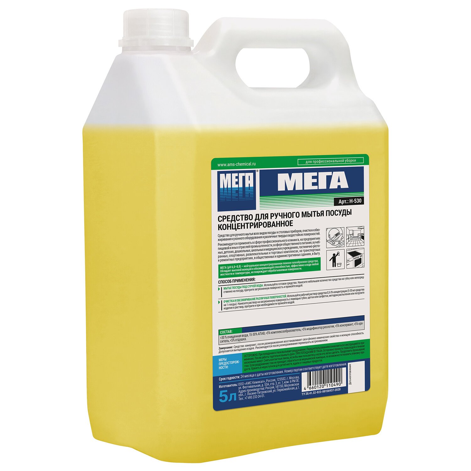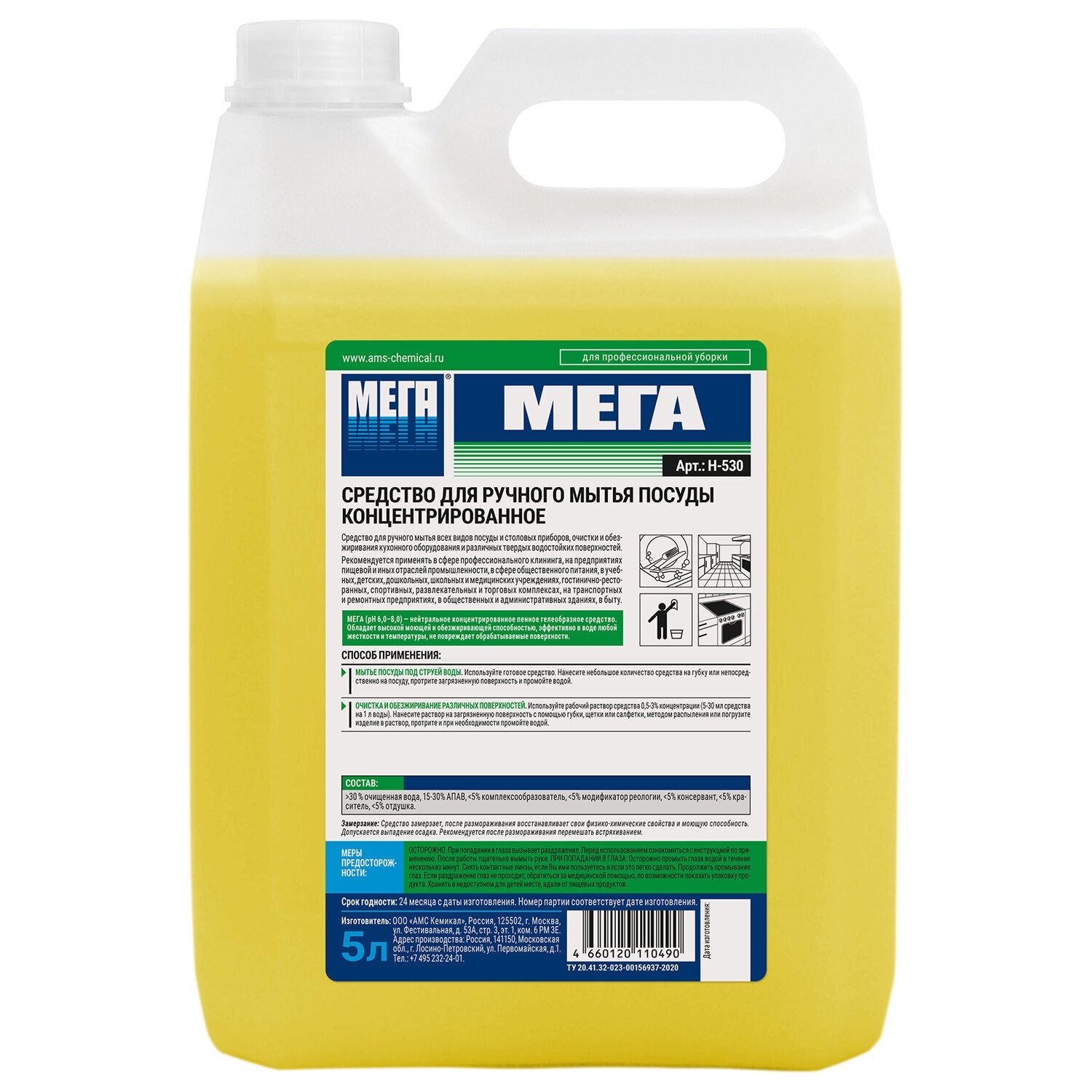 Средство для мытья посуды 5 л, МЕГА, концентрат