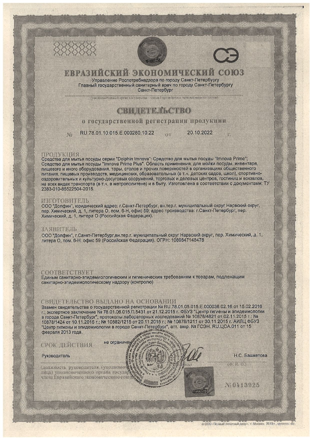 Dolphin Imnova Prime - средство для ручного мытья посуды и поверхностей на пищевых производствах. Легко удаляет с поверхности жир и органические загрязнения. Стабильно работает в воде разной жёсткости.