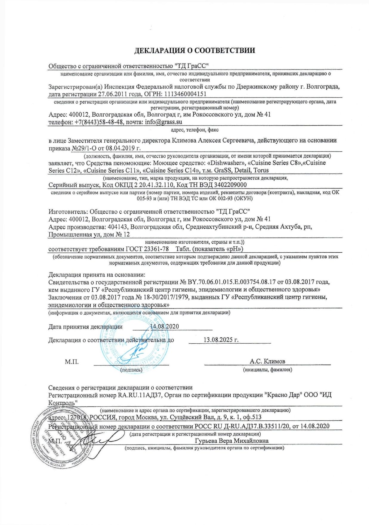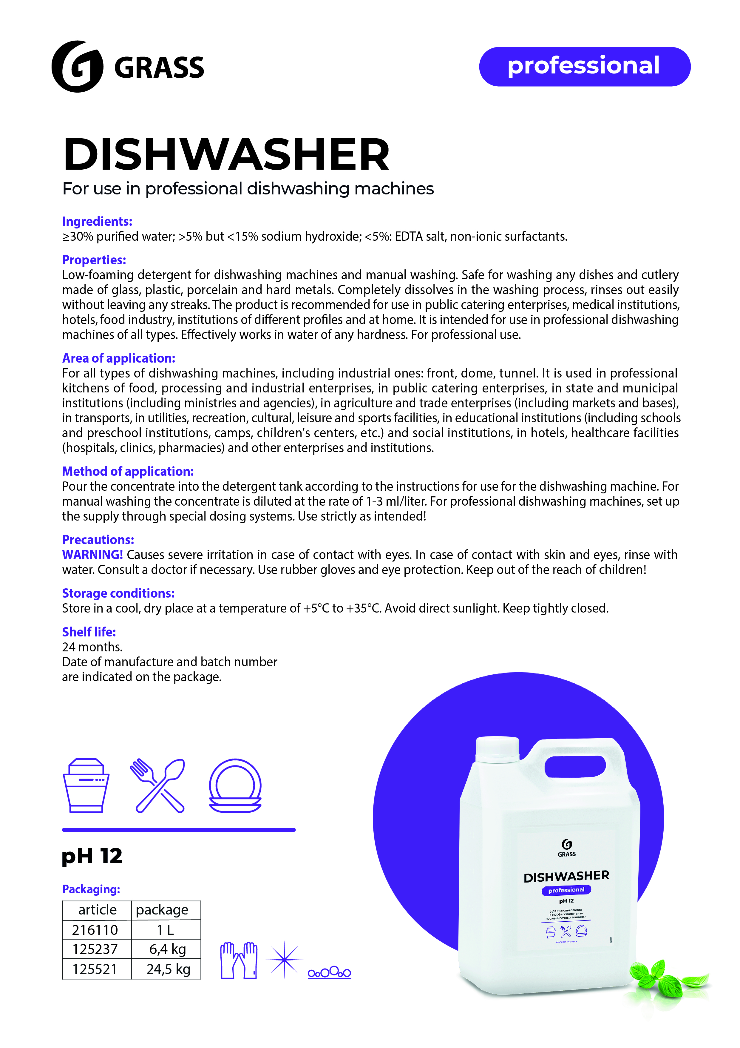 Щелочной моющий состав GRASS DISHWASHER для посудомоечных машин.