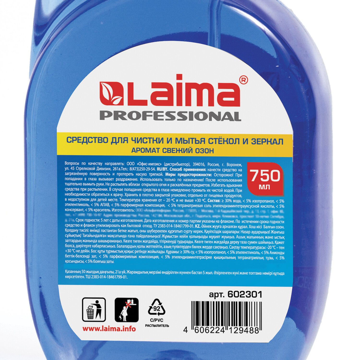 Средство для мытья стекол и зеркал 750 мл, LAIMA PROFESSIONAL, свежий озон, распылитель, 602301