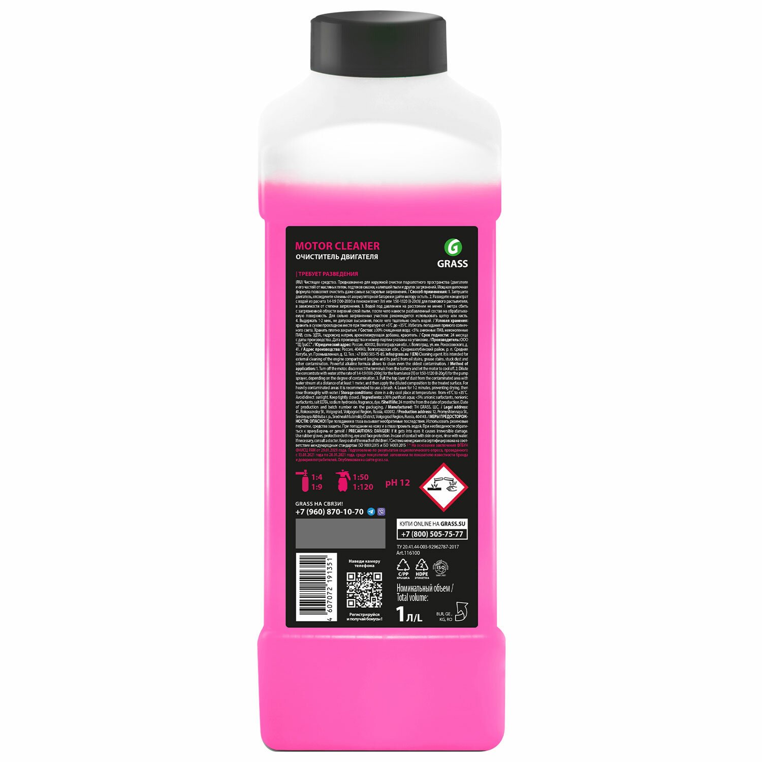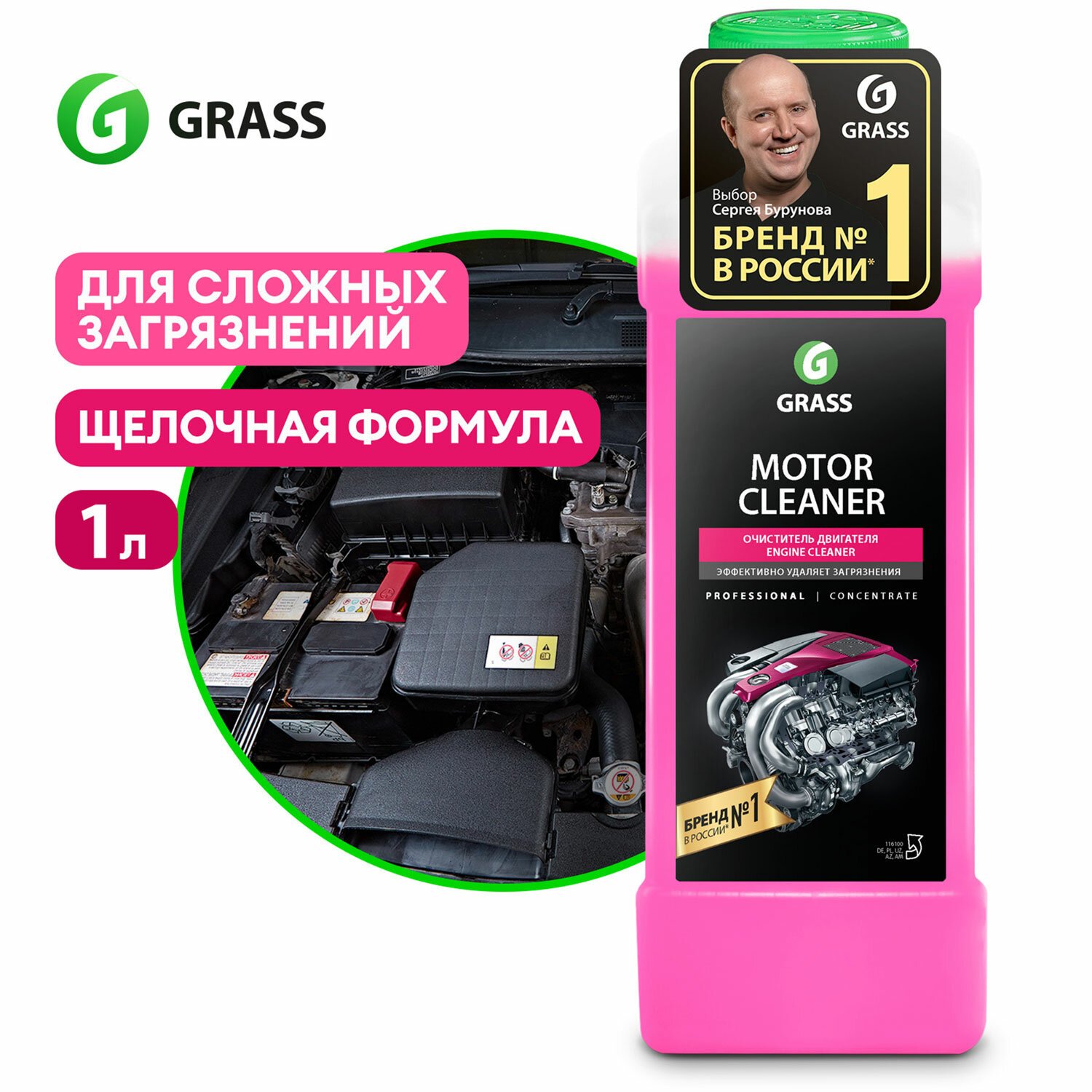 Средство для очистки двигателя 1 л GRASS MOTOR CLEANER, щелочное, концентрат, 116100