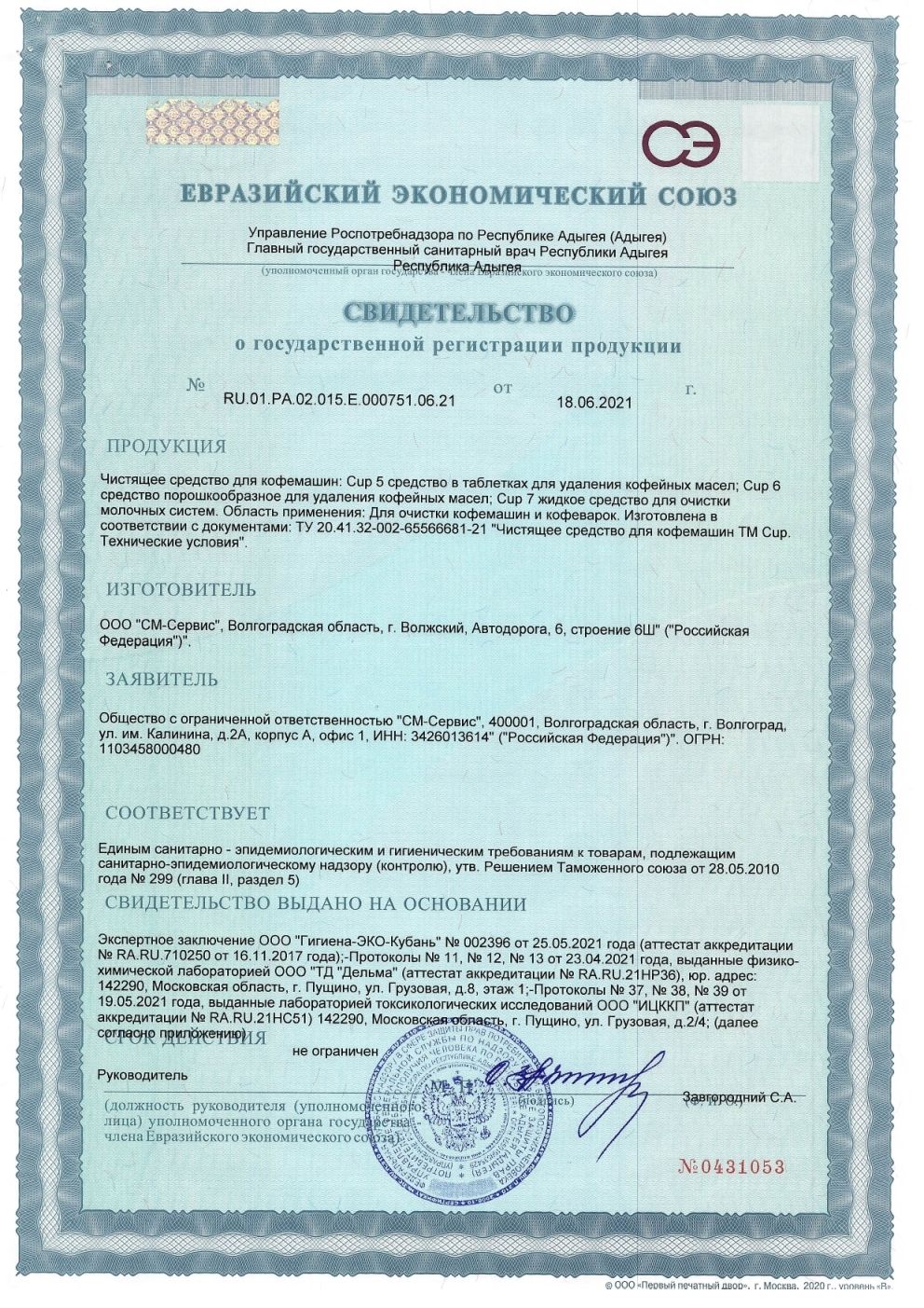 Средство для удаления кофейных масел CUP 6, 1000 г, порошок