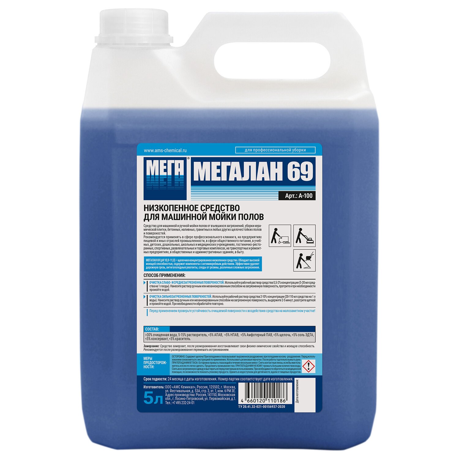 Средство для поломоечных машин 5 л, МЕГАЛАН 69, малопенное
