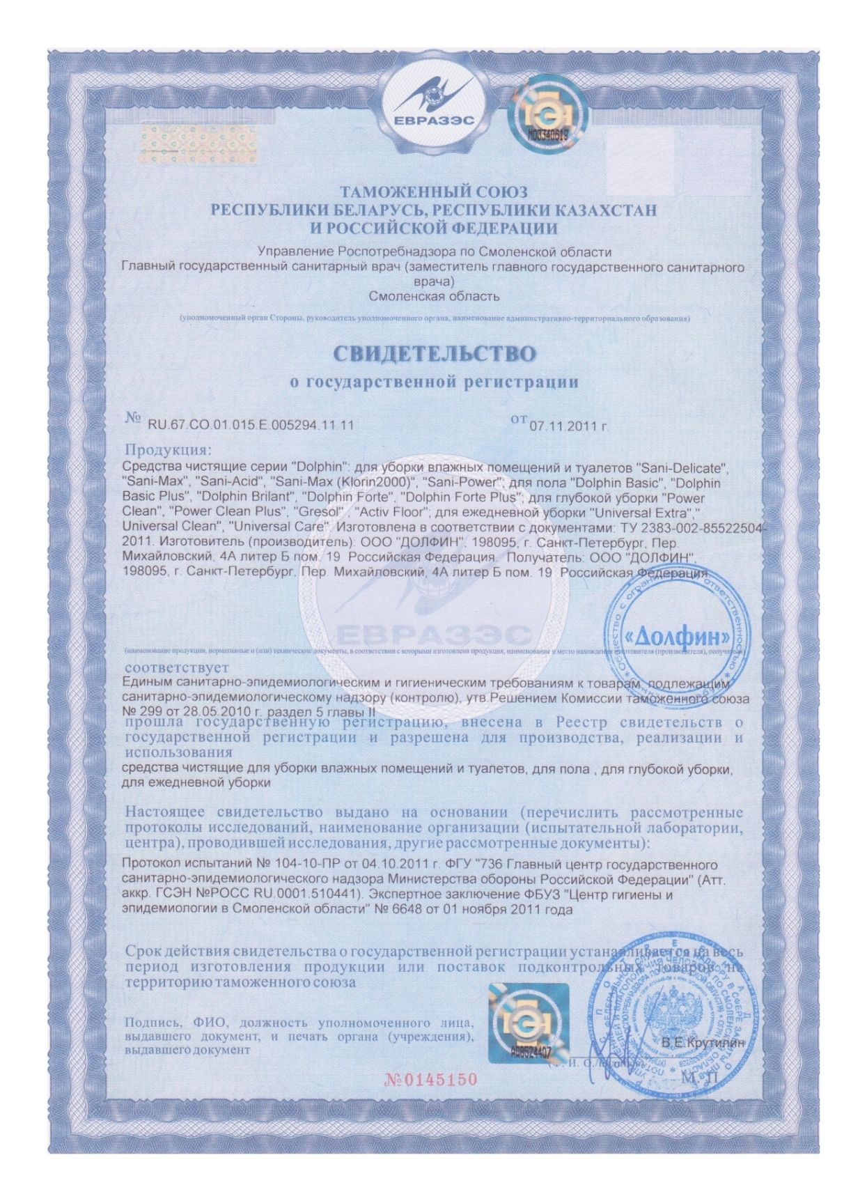 Уровень pH: концентрат – 13, рабочий раствор – 11.