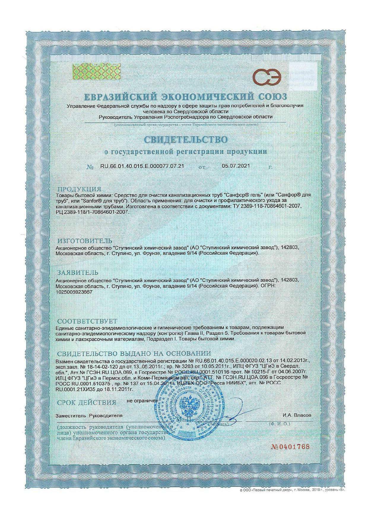 Средство для прочистки канализационных труб на кухне 1 кг, SANFOR гель, 10742