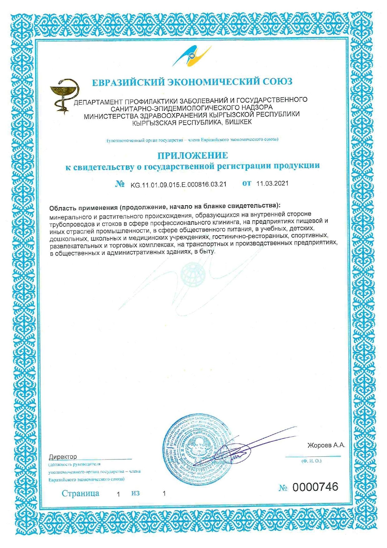 Эффективно растворяет и эмульгирует комбинированные загрязнения органического характера, денатурированный белок, растительные и животные жиры. Убивает бактерии, вызывающие неприятные запахи.