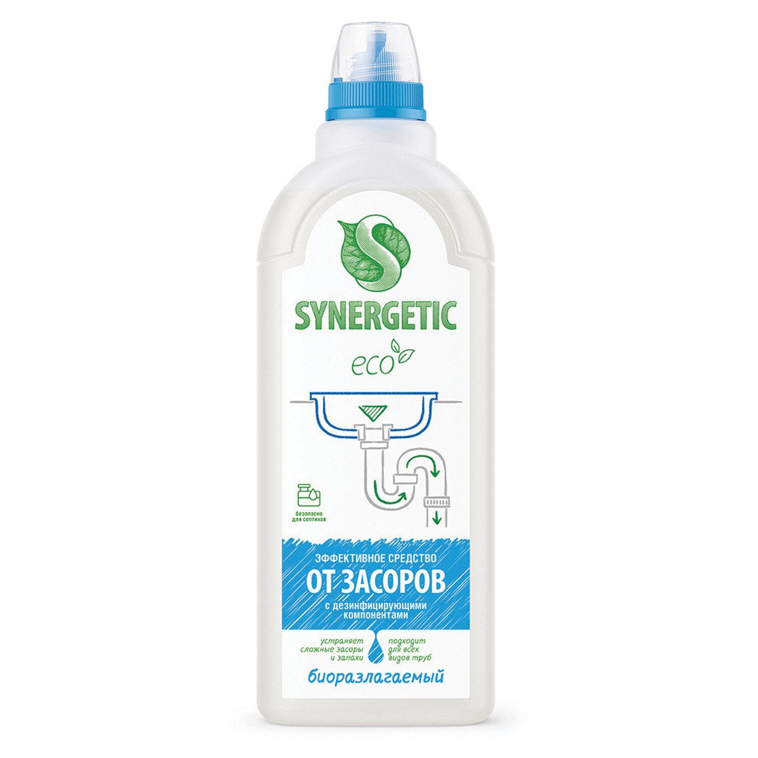 Концентрированное средство для устранения засоров SYNERGETIC – высокоэффективное средство, подходящее для любых видов засоров и канализационных труб. Устраняет запахи и обладает дезинфицирующим эффектом, справляется с засорами даже в стоячей воде. Комплекс биоразлагаемых растительных А-тензидов и соды удаляет засоры всего за полчаса. Кальцинированная сода создает необходимую для растворения засора щелочную среду и быстро расщепляет масложировые компоненты. Биоразлагаемое средство не содержит хлора, ароматизаторов, красителей и агрессивных ПАВ, оно безопасно для всех видов труб и септических установок. Попадая в среду септика, средство без труда распадается на простые соединения.