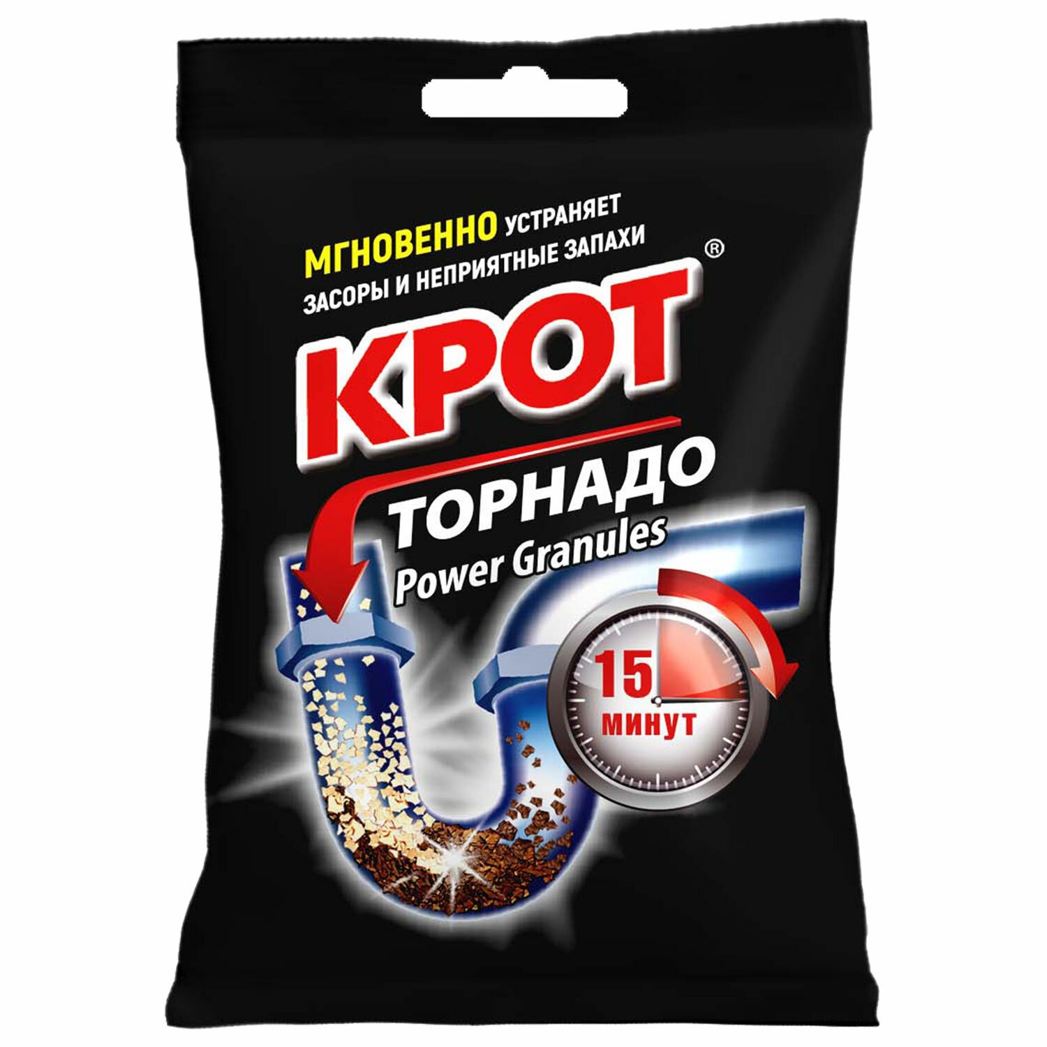 Средство для прочистки канализационных труб в гранулах 90г КРОТ "Торнадо", 4000014