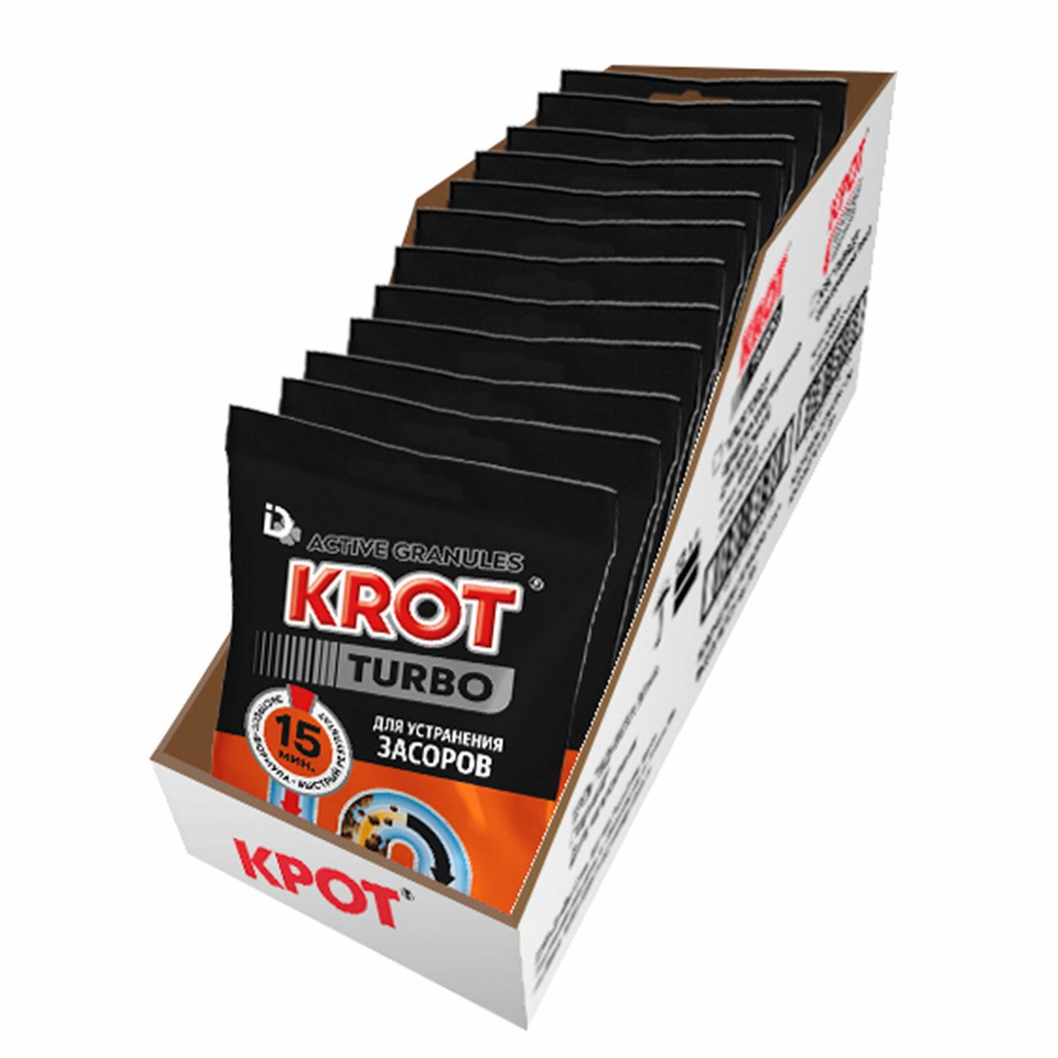 Используйте небольшие порции средства для профилактики раз в месяц и забудете о засорах. Теперь и новый KROT TURBO еще концентрированнее! КРОТ Турбо гранулированный 90 г это прекрасное средство для прочистки труб и средство от засоров в трубах. Очиститель труб справится с любым засором! Очистка труб произойдет быстро и неизбежно.