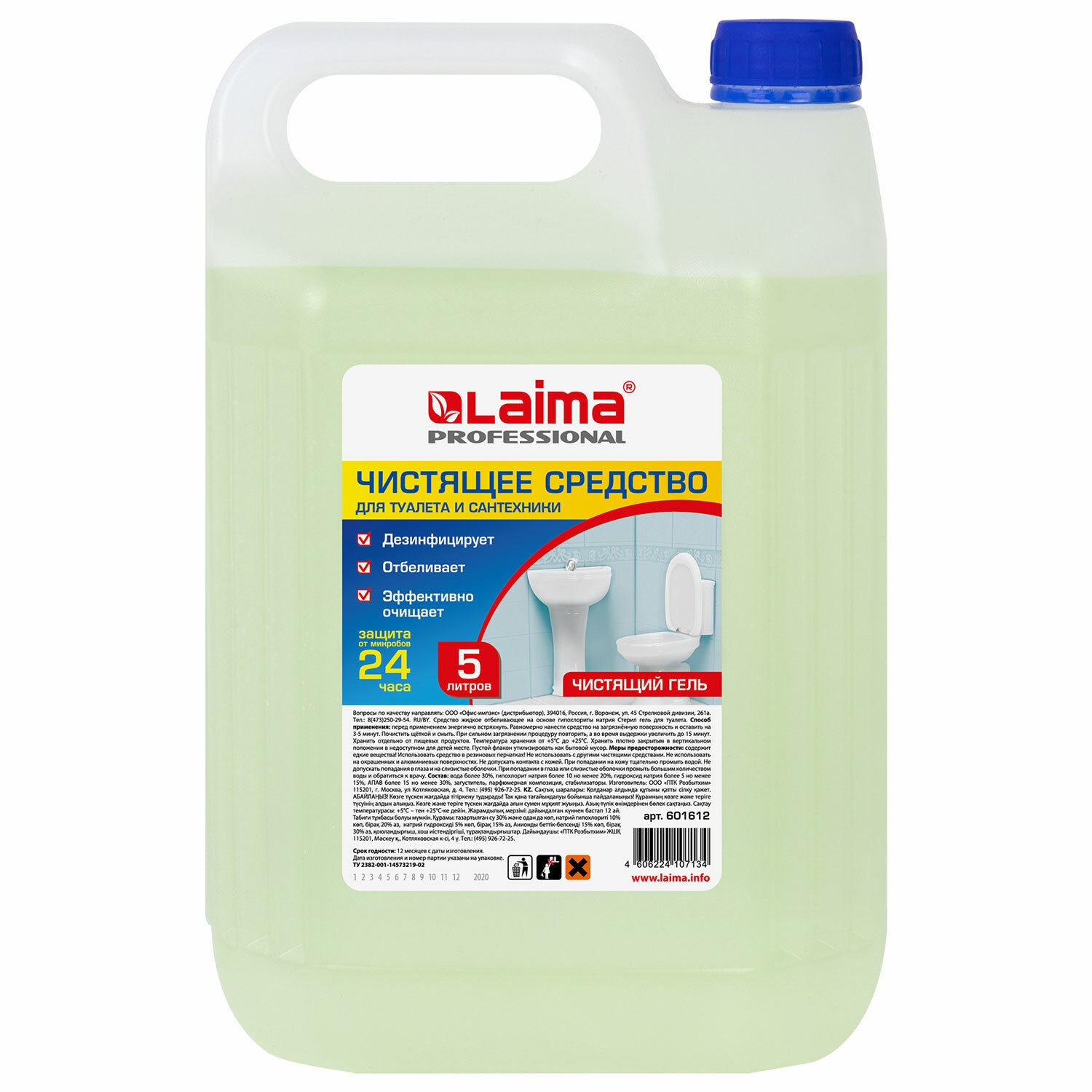 Средство для уборки туалета 5 л, ЛАЙМА PROFESSIONAL, гель с отбеливающим эффектом, 601612