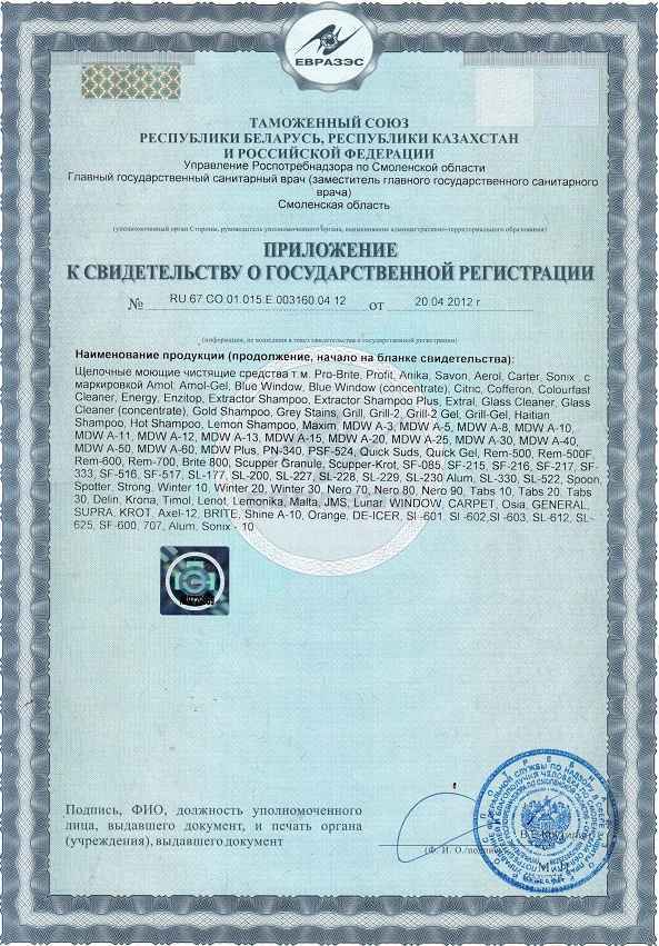 Примечание: оптимальную концентрацию определять по виду и степени загрязнения, жесткости и температуре воды, типу поверхности.