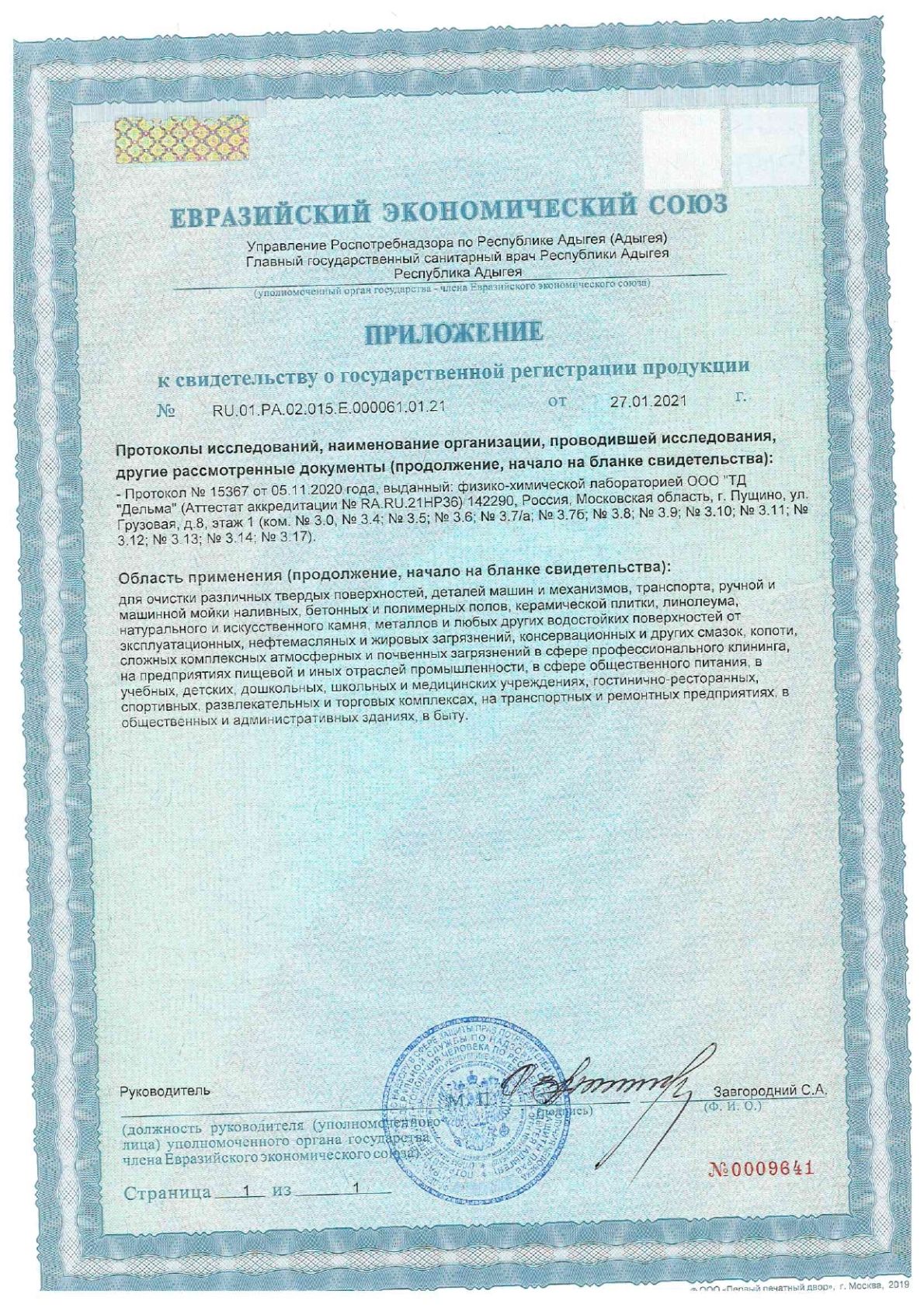 Средство для очистки твёрдых поверхностей, деталей машин и механизмов, ручной и машинной мойки любых полов, керамической плитки, линолеума и др. Эффективно удаляет эксплуатационные, нефтемасляные и жировые загрязнения, другие смазки, копоть.