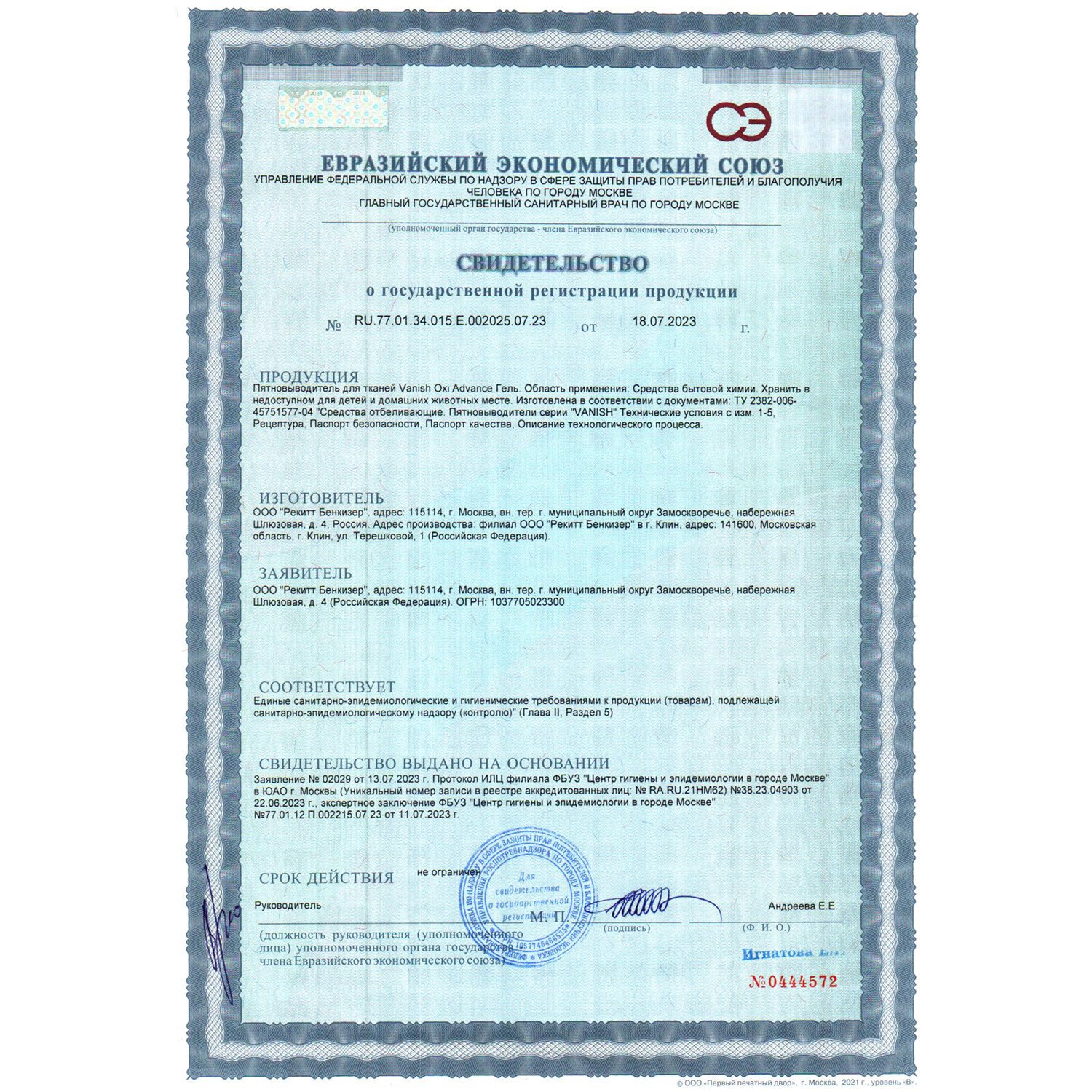 Средство для удаления пятен 1,5 л VANISH (Ваниш) "Oxi Advance", гель, 3143456