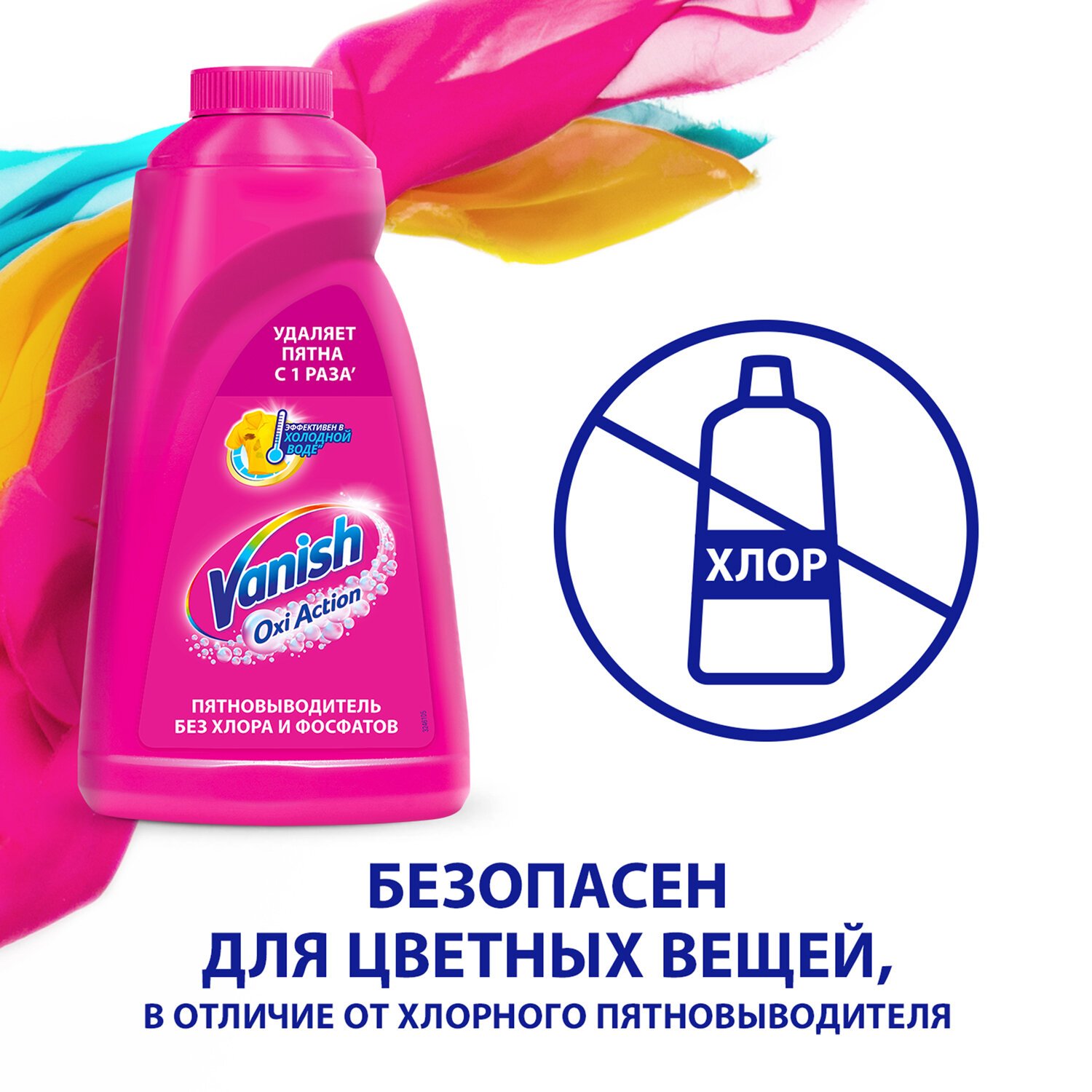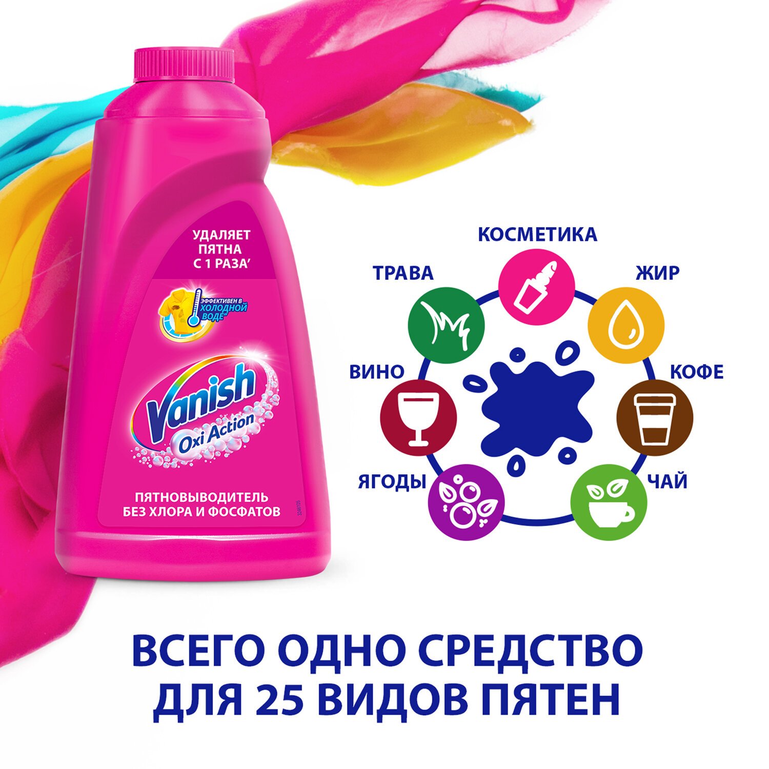 Жидкий пятновыводитель VANISH "Oxi Action" содержит активный кислород, который удаляет пятна и сохраняет цвет ваших вещей. Жидкий VANISH "Oxi Action" безопасен как для цветных, так и для белых вещей. Эффективен даже в холодной воде (30°С). Подходит для деликатных тканей – шерсти и шелка.