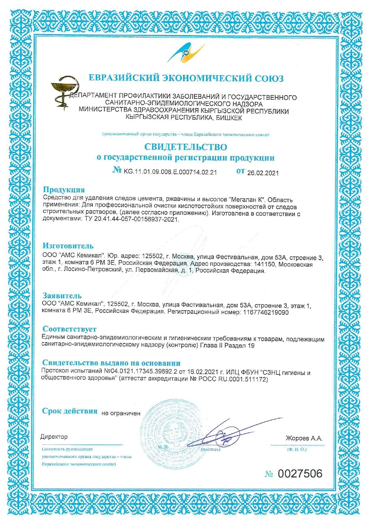 Средство для удаления следов цемента 5 л, МЕГАЛАН К, К 330
