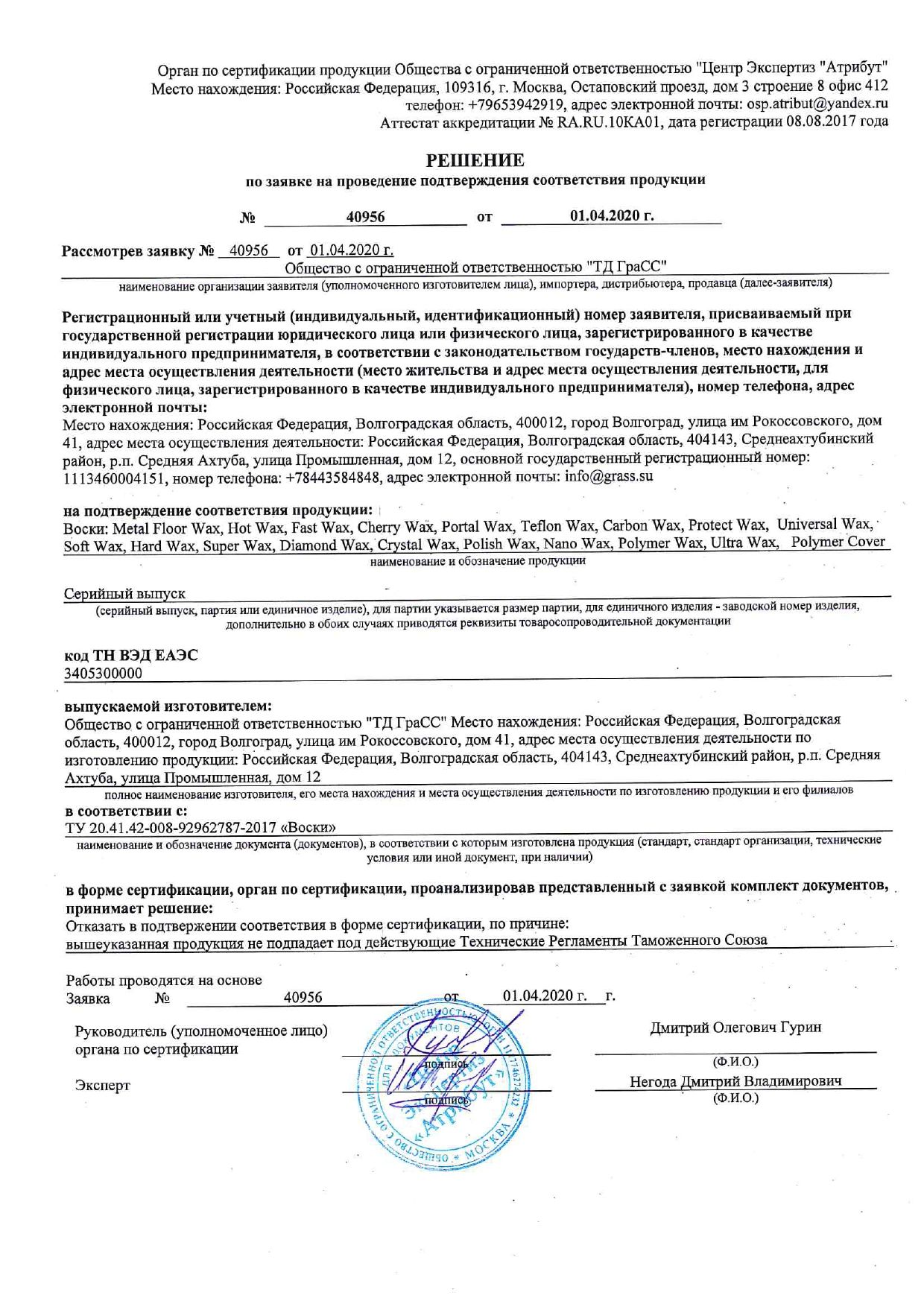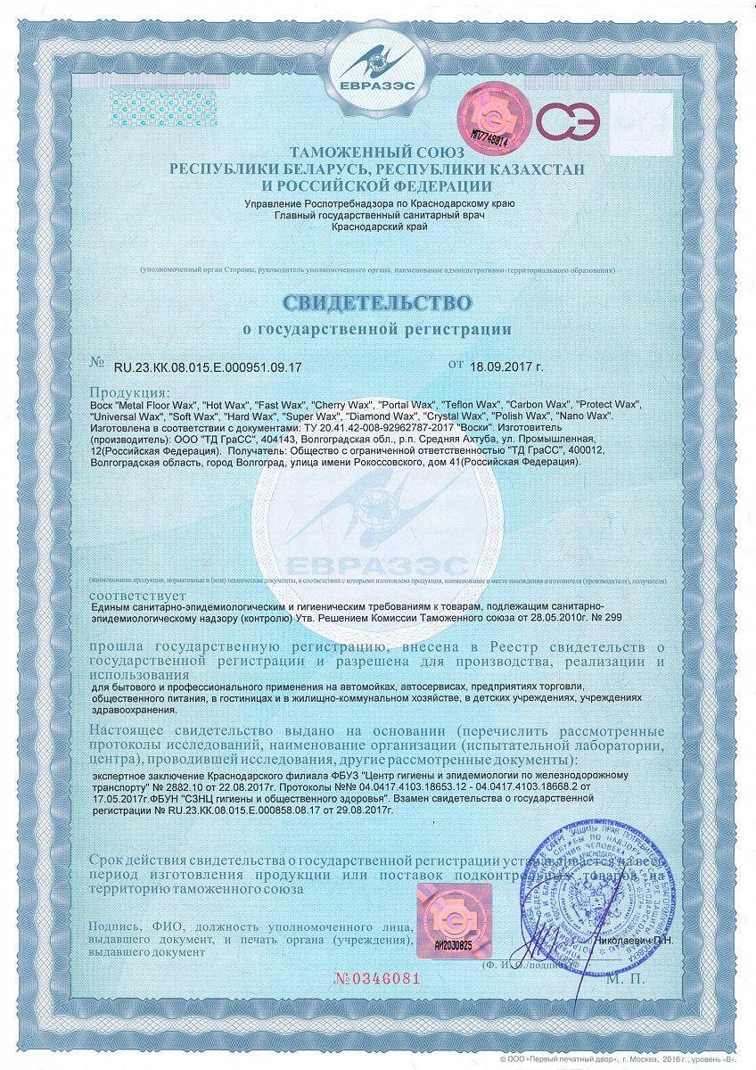 Состав: более или равно 30% очищенная вода; более или равно 5%, но менее 15% органические растворители; менее 5%: катионные ПАВ, неионогенные ПАВ, ароматизирующая добавка, краситель.
