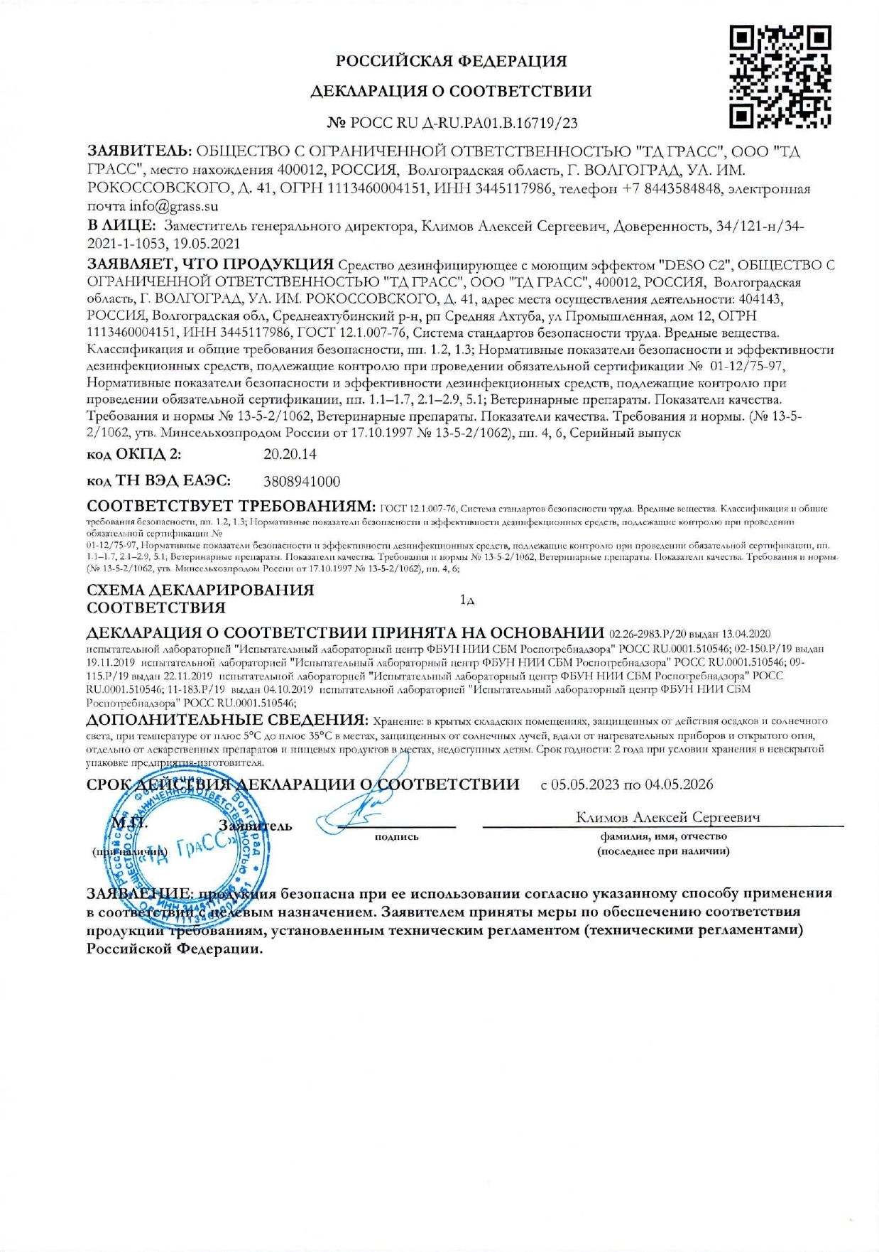 Способ применения: используется в соответствии с инструкцией разработанной в ФБУН НИИ Дезинфектологии Роспотребнадзора № 01_20 предприятия пищевой промышленности и инструкцией № 02_20 в медицинских организациях.