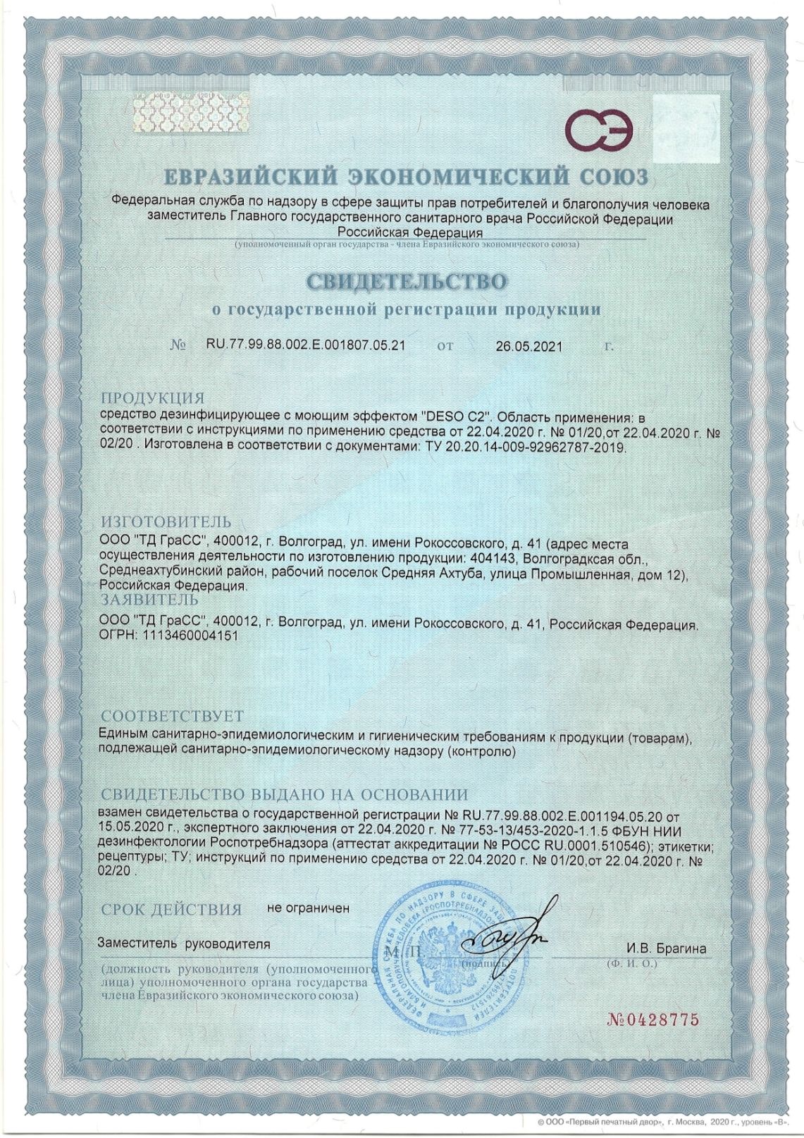 GRASS DESO C2 - моющее средство с дезинфицирующим эффектом на основе ЧАС.