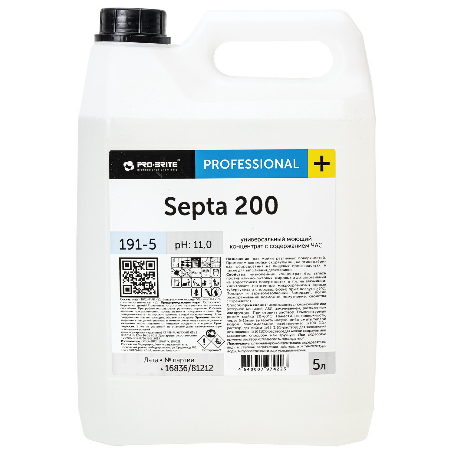 Средство моющее c дезинфицирующим эффектом 5 л PRO-BRITE SEPTA 200, концентрат, 191-5
