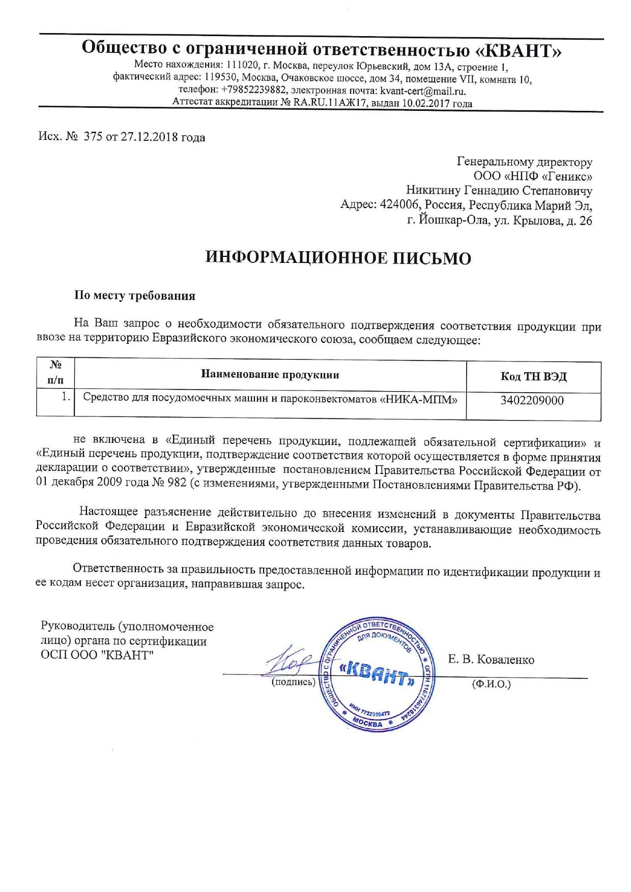 При использовании с ополаскивателем "НИКА-ОПМ" достигается оптимальный результат.