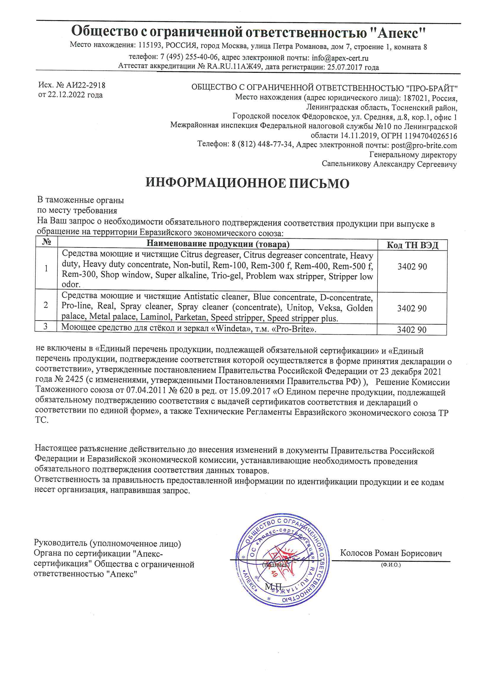 ТУ 2383-001-15179298-2010. Не подлежит обязательной сертификации и декларированию.