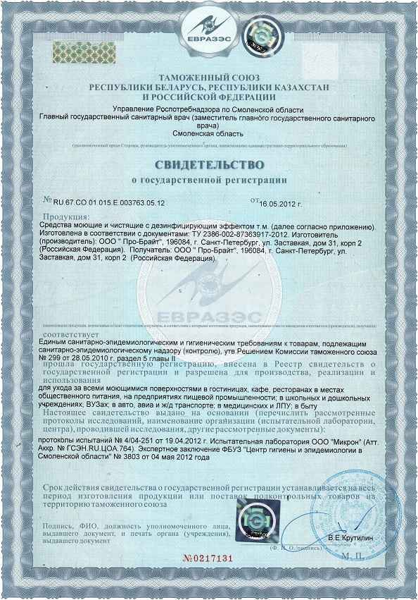 Не подлежит обязательной сертификации и декларированию. ТУ 2386-002-87363917-2012.