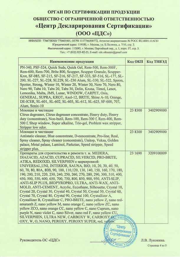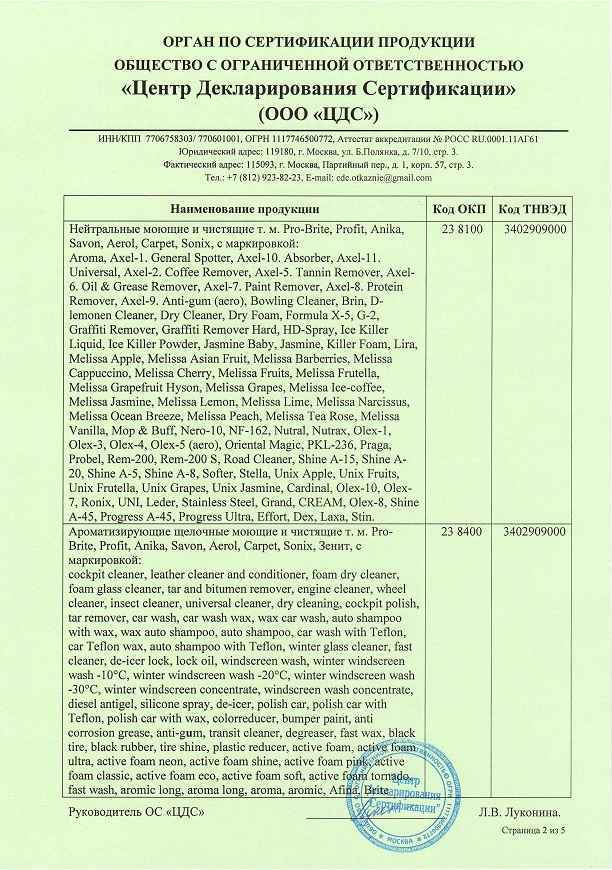 Примечание: оптимальную концентрацию определять по виду и степени загрязнения, жесткости и температуре воды, типу поверхности.