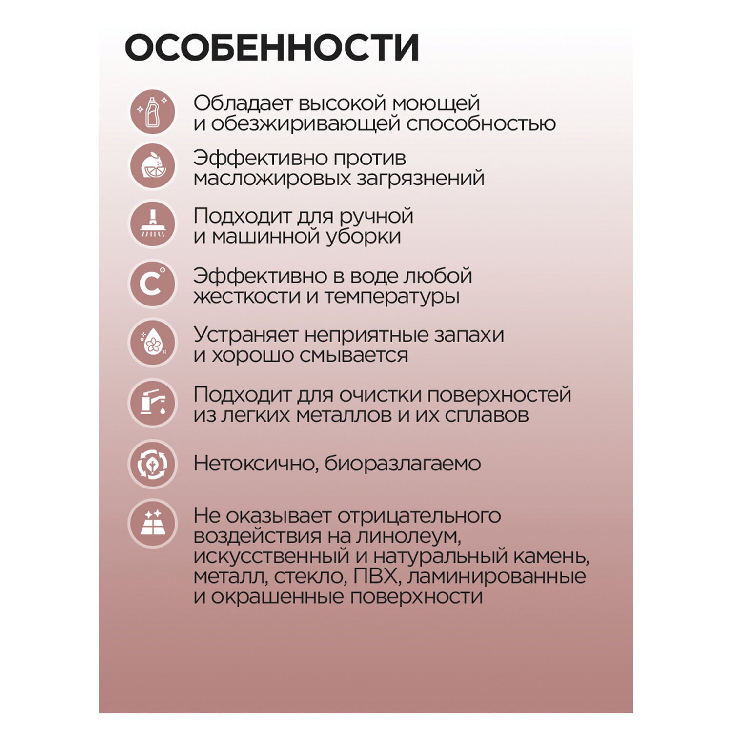 Универсальное моющее средство с пониженным пенообразованием для ручной и машинной уборки. Применяется для мытья полов, стен, облицовочной плитки, сантехоборудования и т.п.