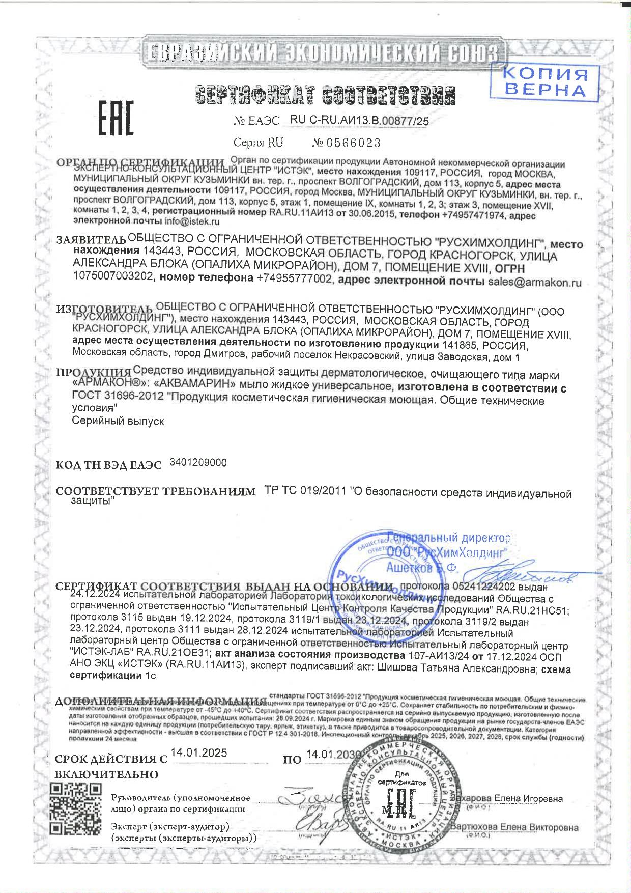Жидкое мыло АРМАКОН АКВАМАРИН предназначено для очищения кожи от легких производственных загрязнений и защитных кремов. Эффективно очищает кожу в воде любой жесткости. Средство высшей категории эффективности относительно неустойчивых загрязнений.