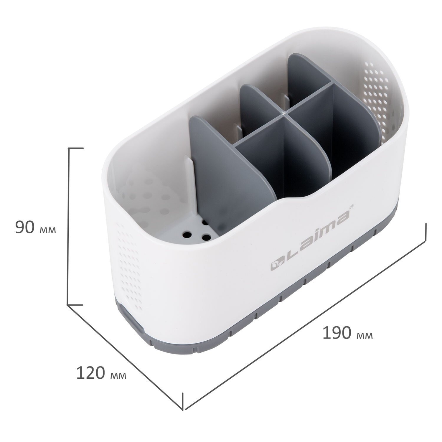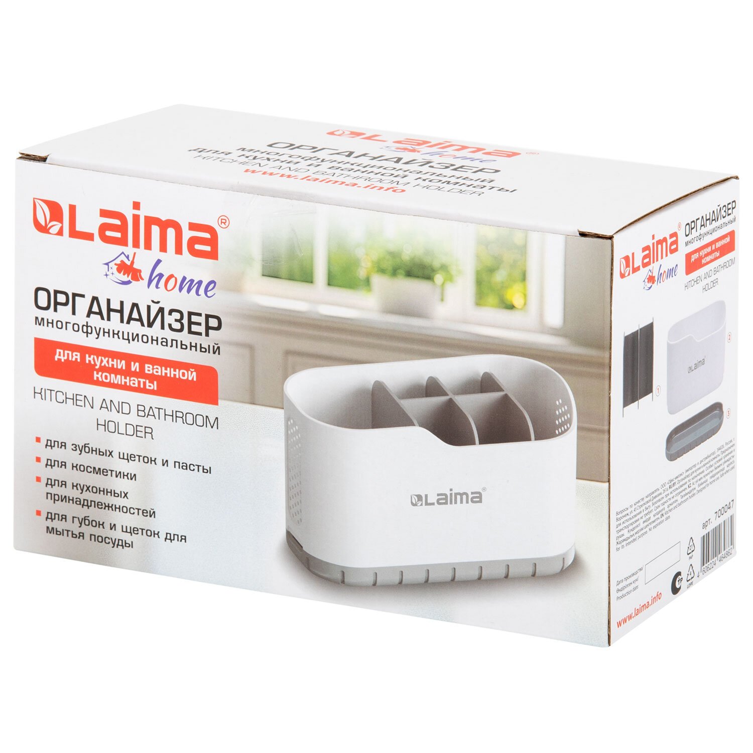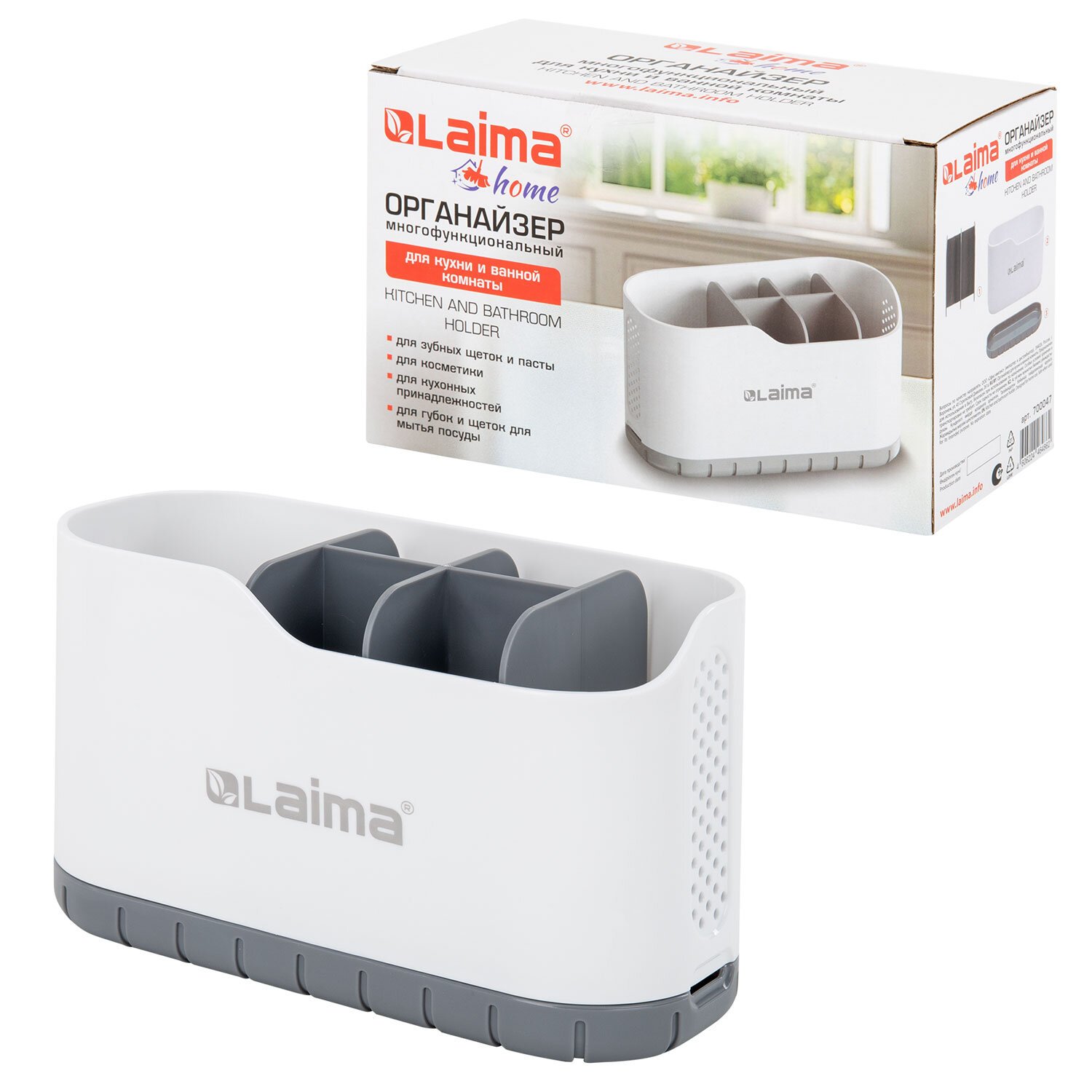 Многофункциональный органайзер для ванной и кухни Laima Home превратит Ваше пространство в образец порядка и стиля. В нем найдется место для всего: от губок и щеток для мытья посуды до зубных щеток и косметики.