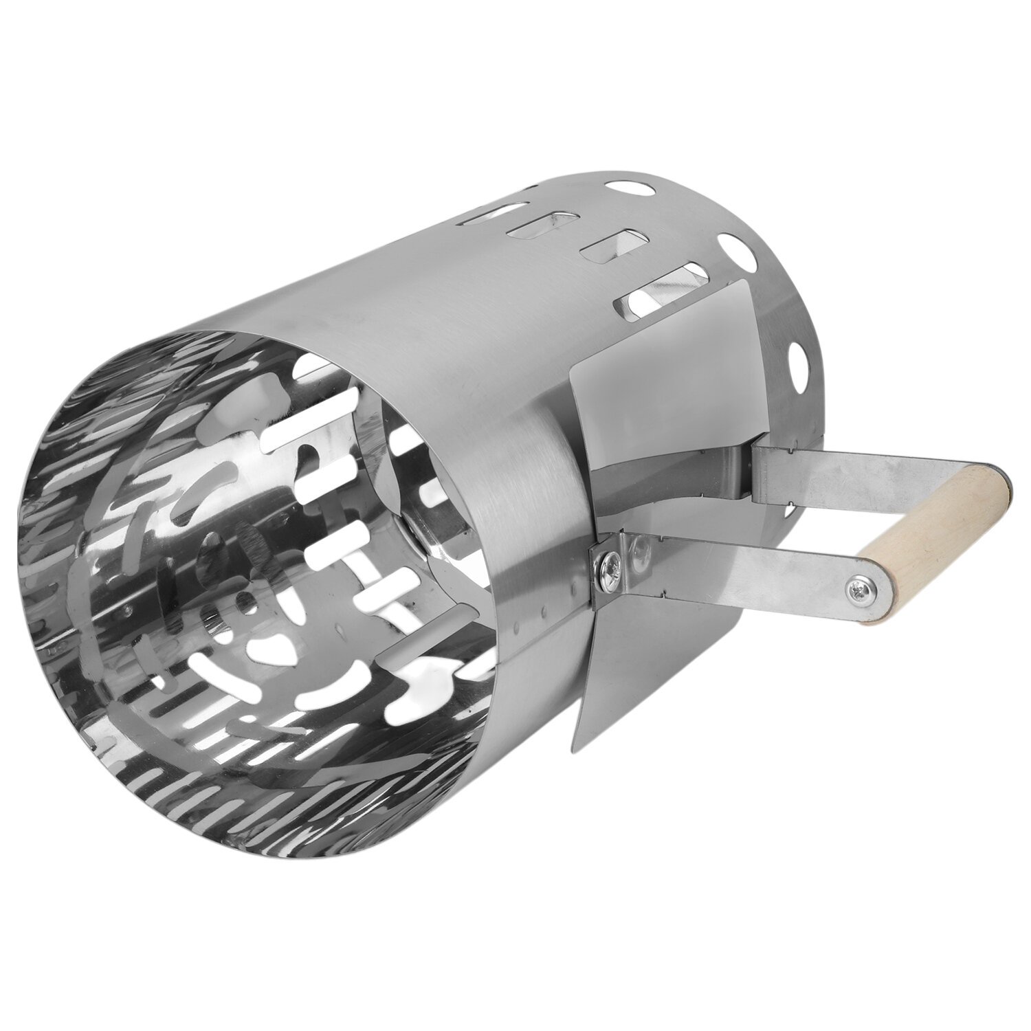 Стартер для розжига изготовлен из нержавеющей стали. Оптимальный размер 19х19х30 см сокращает время розжига углей в 3-4 раза. Снижает риск возгорания и способствует уменьшению количества дыма, делает готовку пищи более комфортной и приятной.
