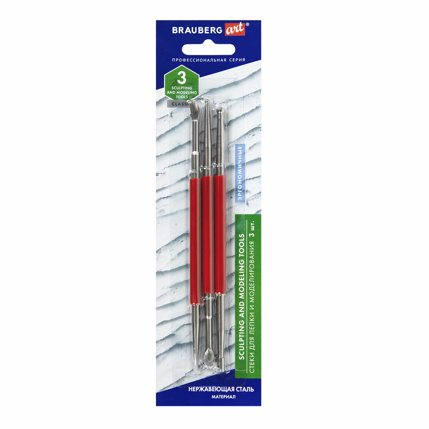 Стеки для лепки и моделирования металлические эргономичные, НАБОР 3 шт., BRAUBERG ART, 271167