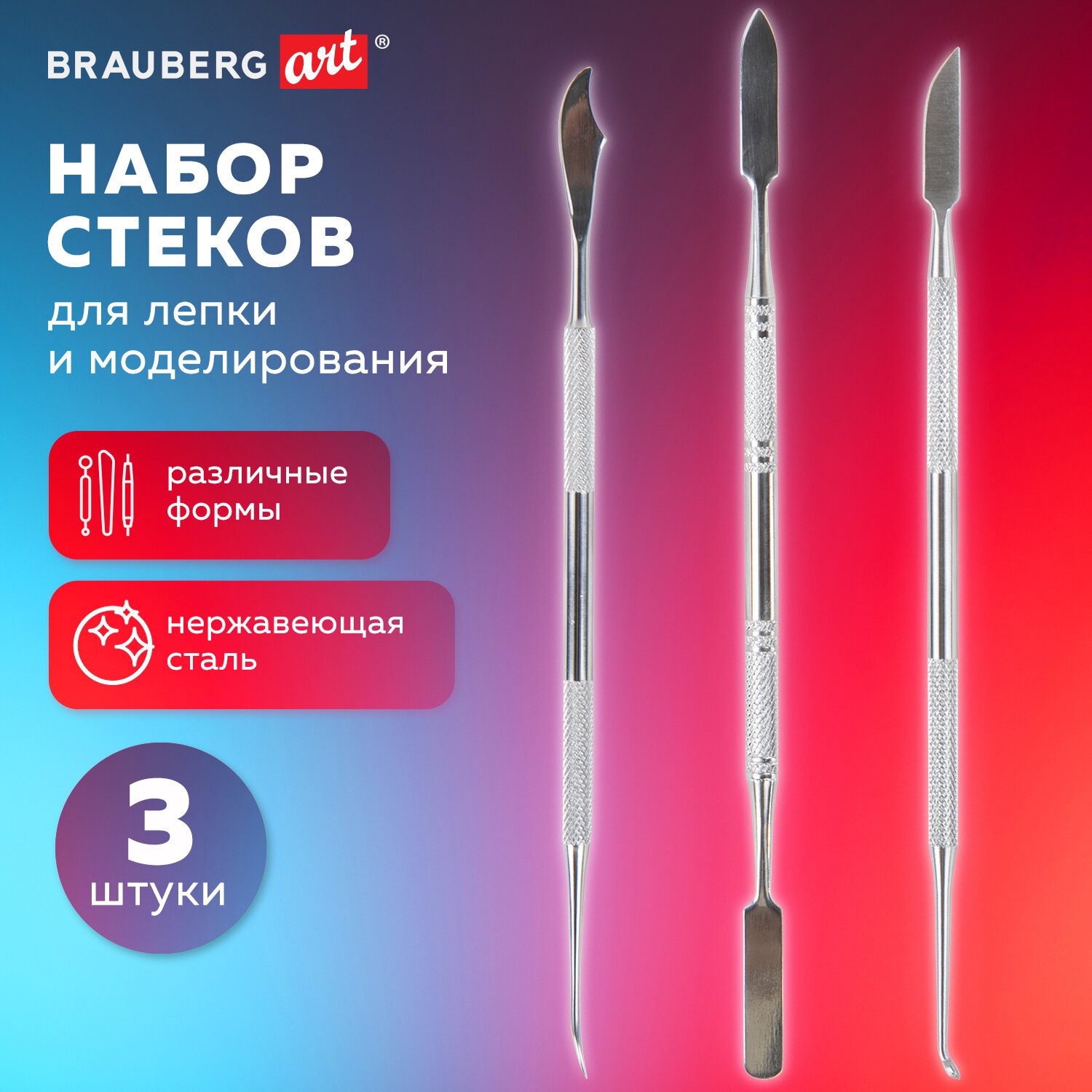 Стеки для лепки и моделирования металлические НАБОР 3 шт., BRAUBERG ART CLASSIC, 271170