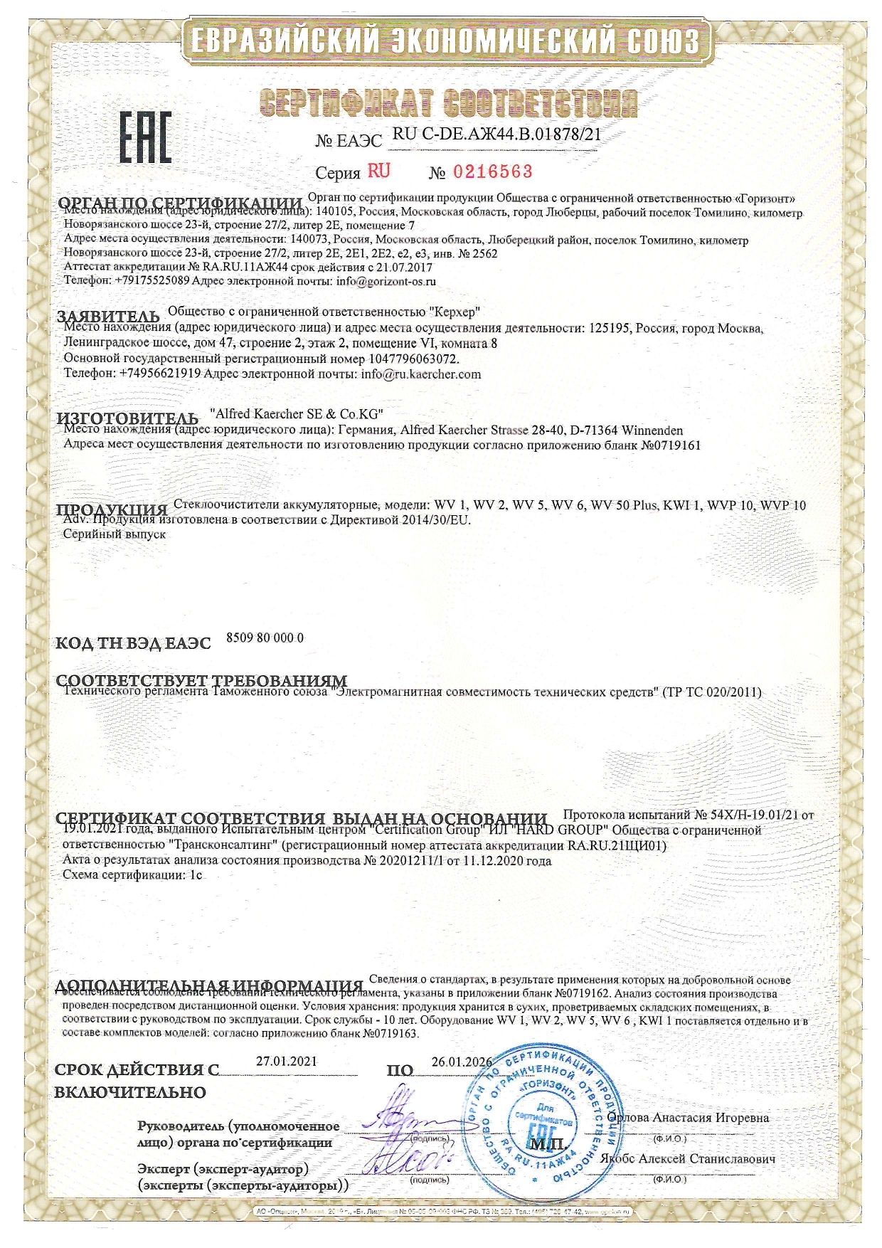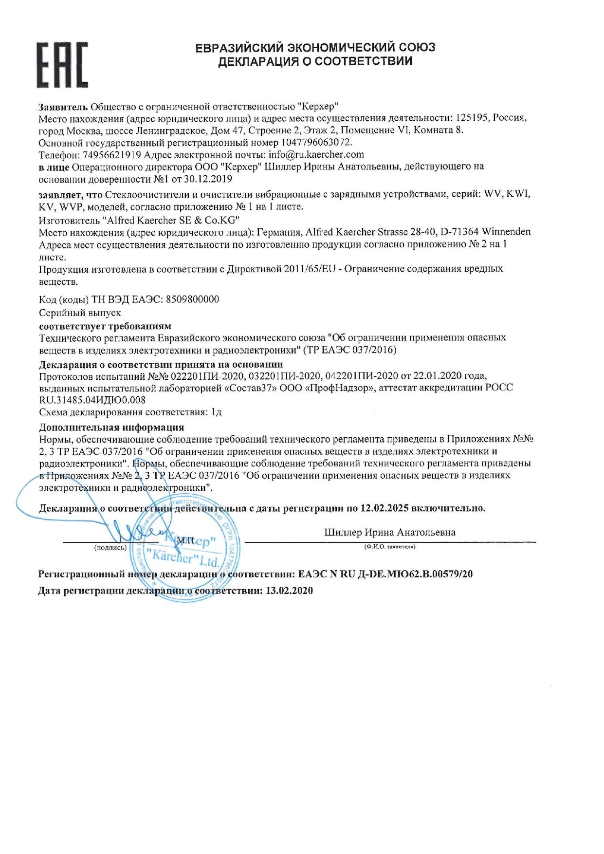 В стандартную комплектацию модели KARCHER WVP 10 входят: