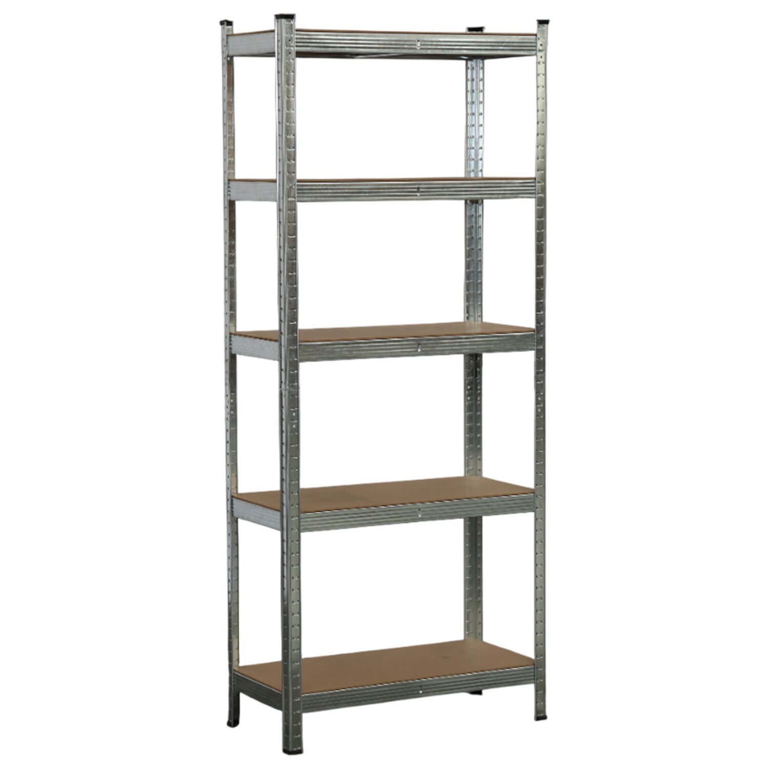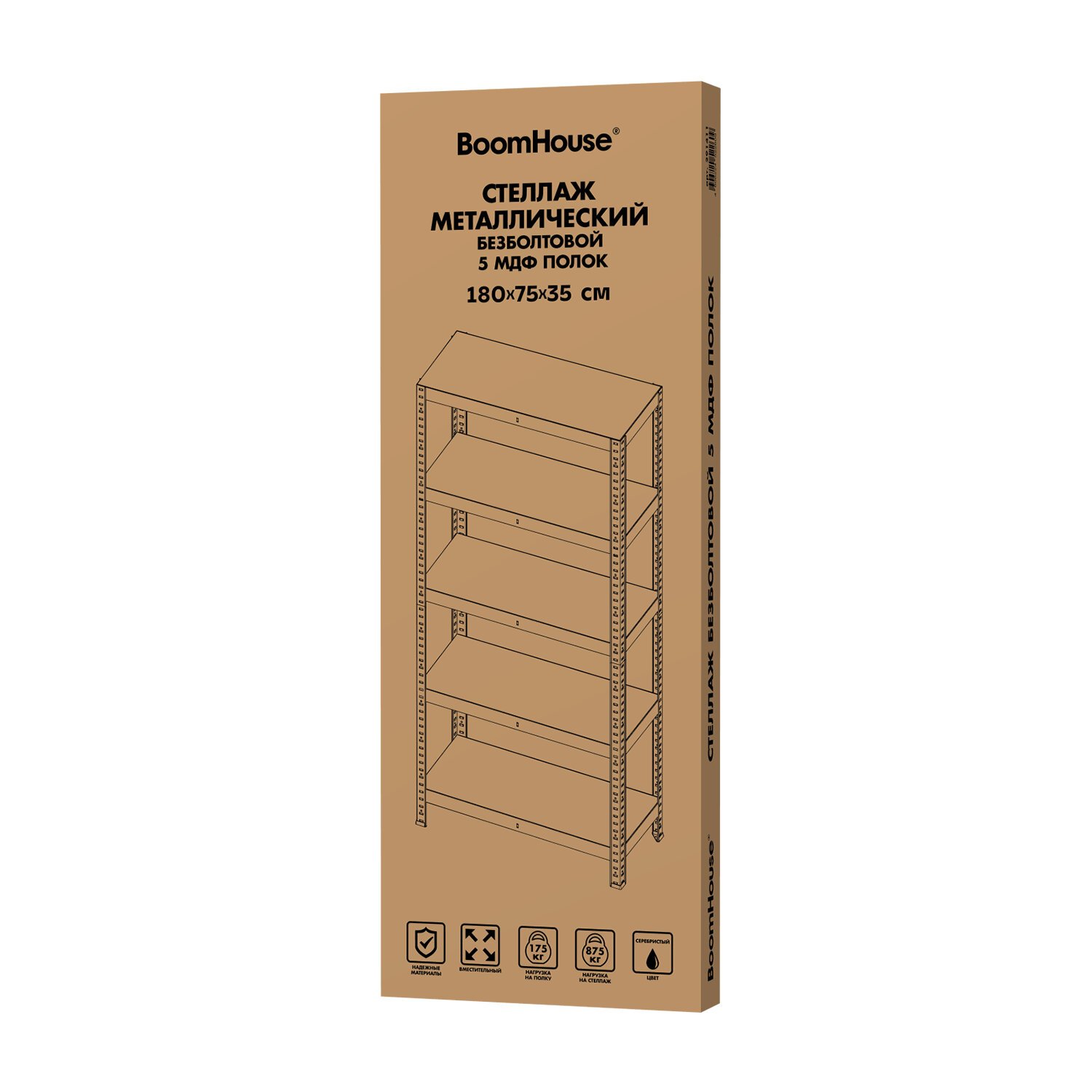 Стеллаж металлический BOOMHOUSE (БУМХАУС) безболтовой, в1800*ш750*г350мм, 5 полок МДФ, серебристый, 291411