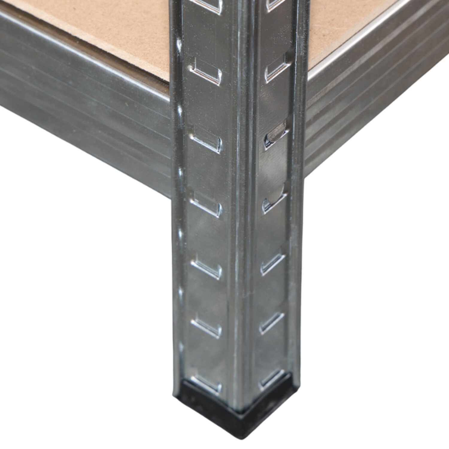 Для повышения жесткости всей конструкции верхняя и нижняя полка усилена дополнительными Г-образными уголками.
