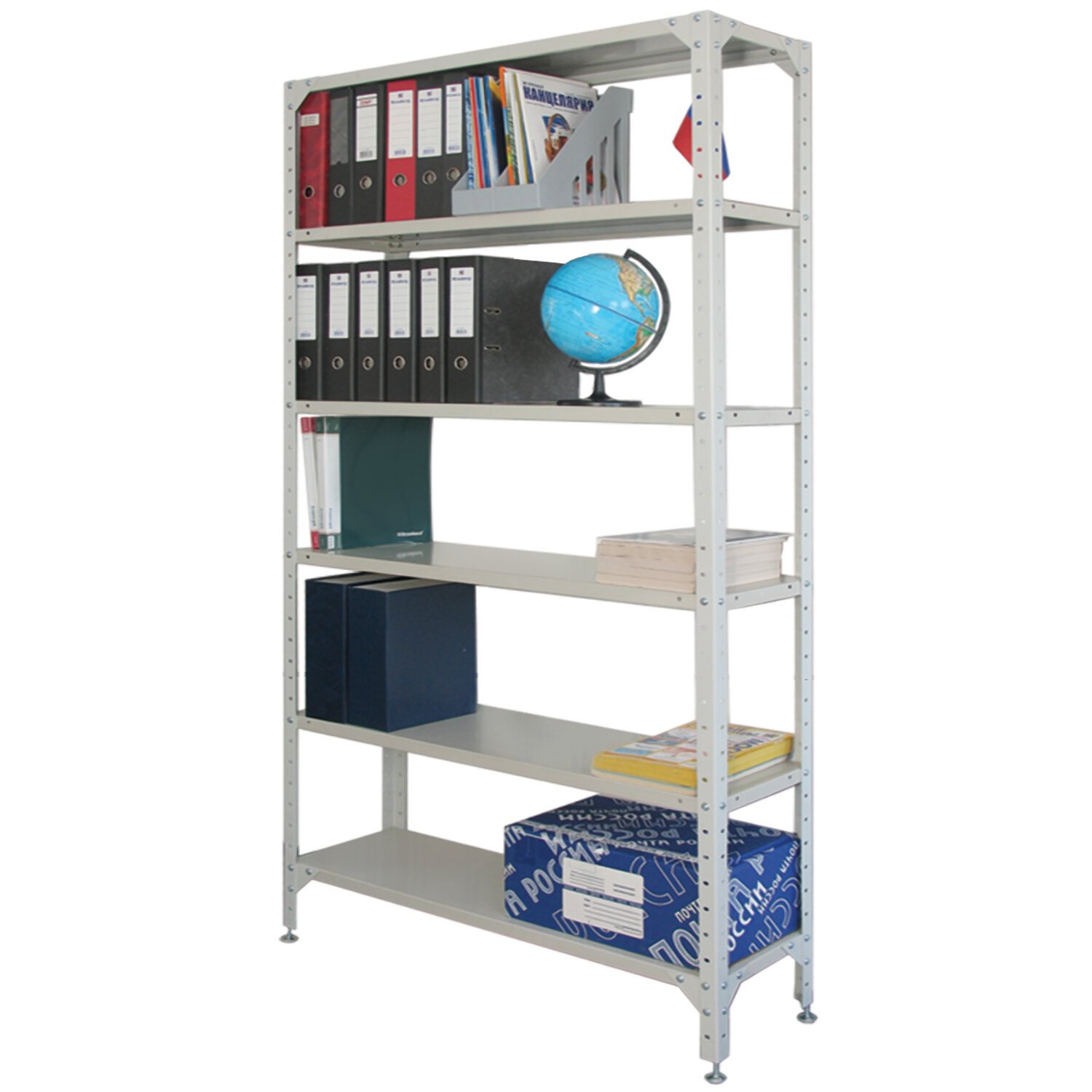 Металлический стеллаж с усиленной стойкой и регулируемыми опорами. Простой и экономичный способ организовать хранение вещей. Предназначены для хранения документов и различных грузов в офисе, на складе, в архиве.