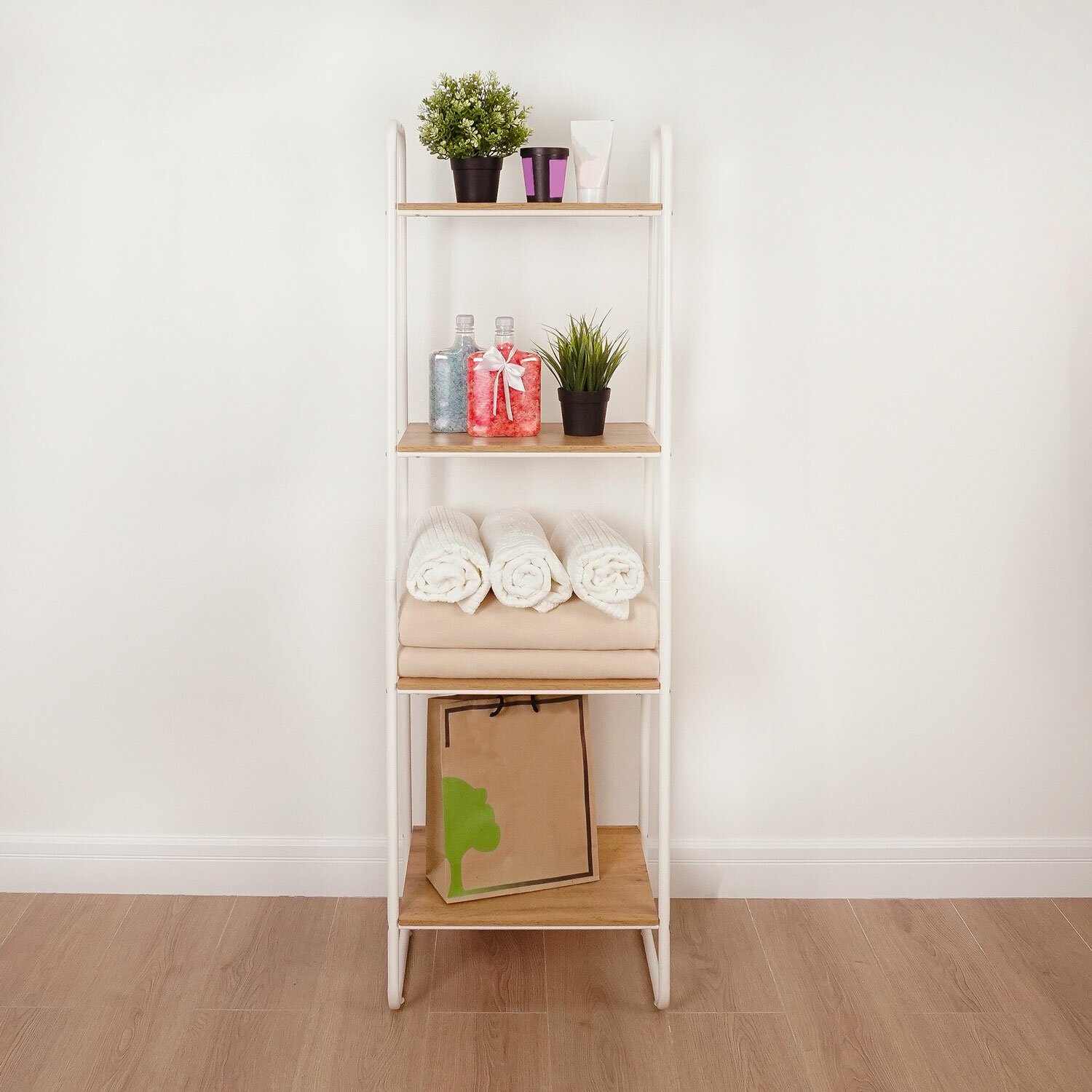 Стеллаж на металлокаркасе "Скандинавия-14", 450х385х1470 мм, 4 полки ЛДСП, белый/дуб, CТCП14 Б