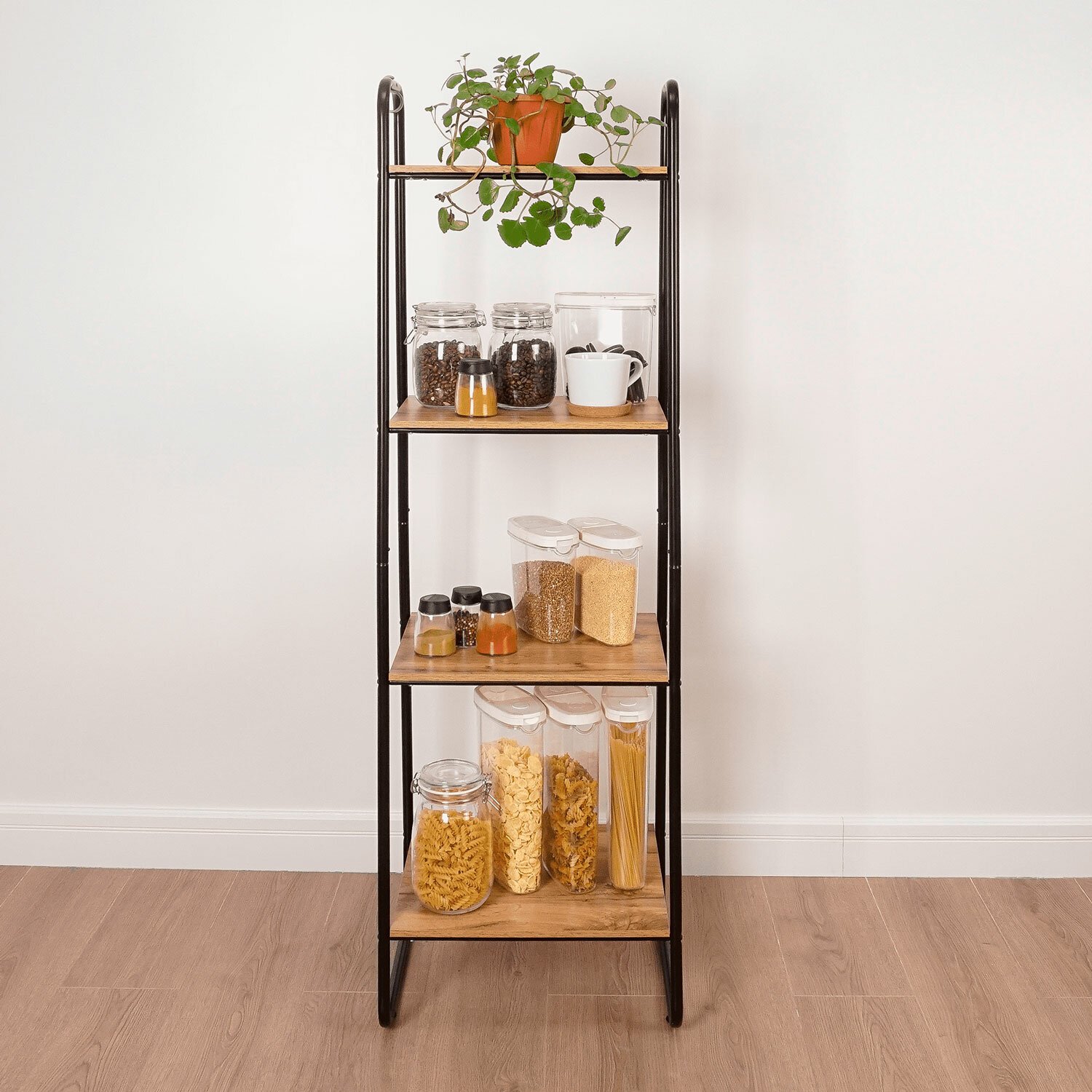Стеллаж на металлокаркасе "Скандинавия-14", 450х385х1470 мм, 4 полки ЛДСП, черный/дуб, CТCП14 Ч