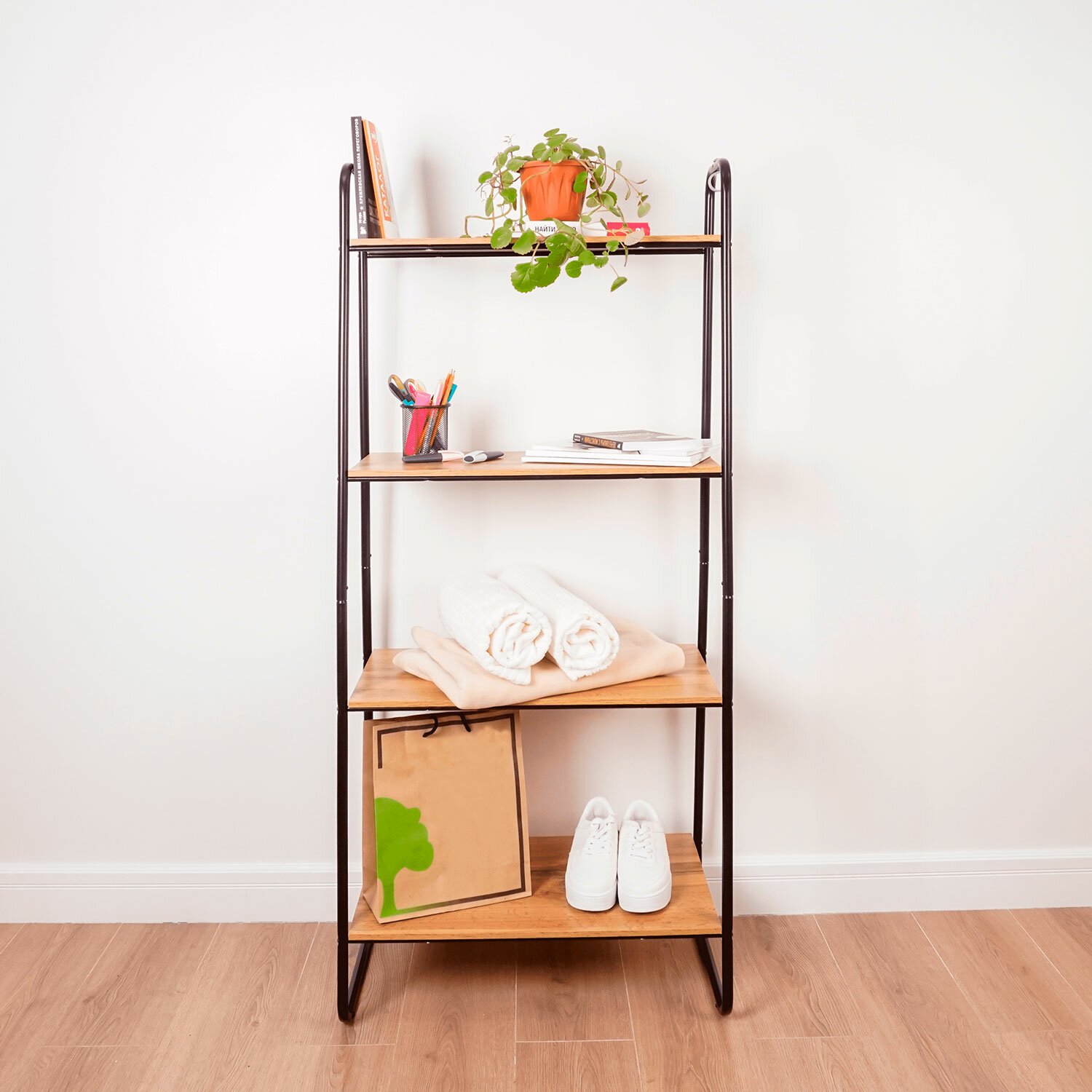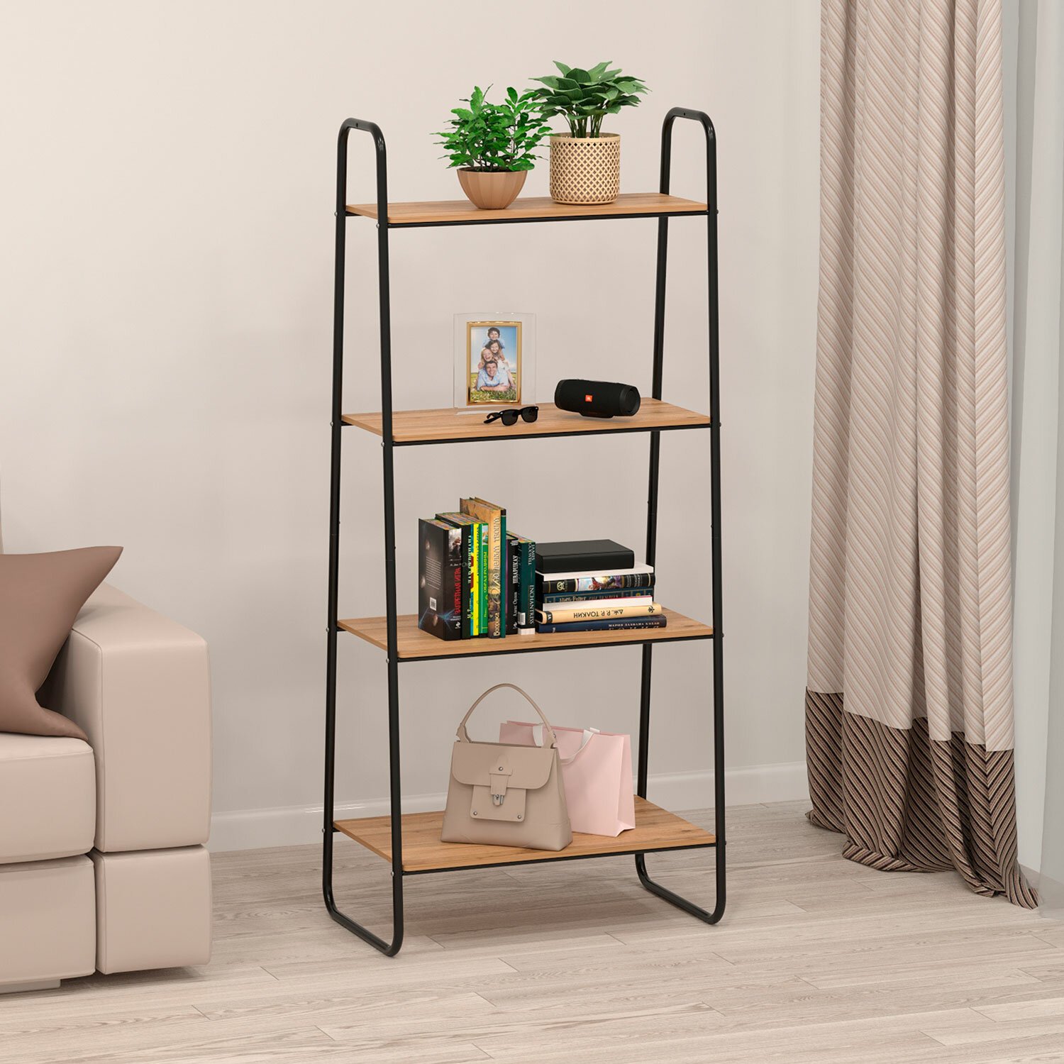 Стеллаж на металлокаркасе "Скандинавия-24", 650х385х1470 мм, 4 полки ЛДСП, черный/дуб, CТCП24 Ч