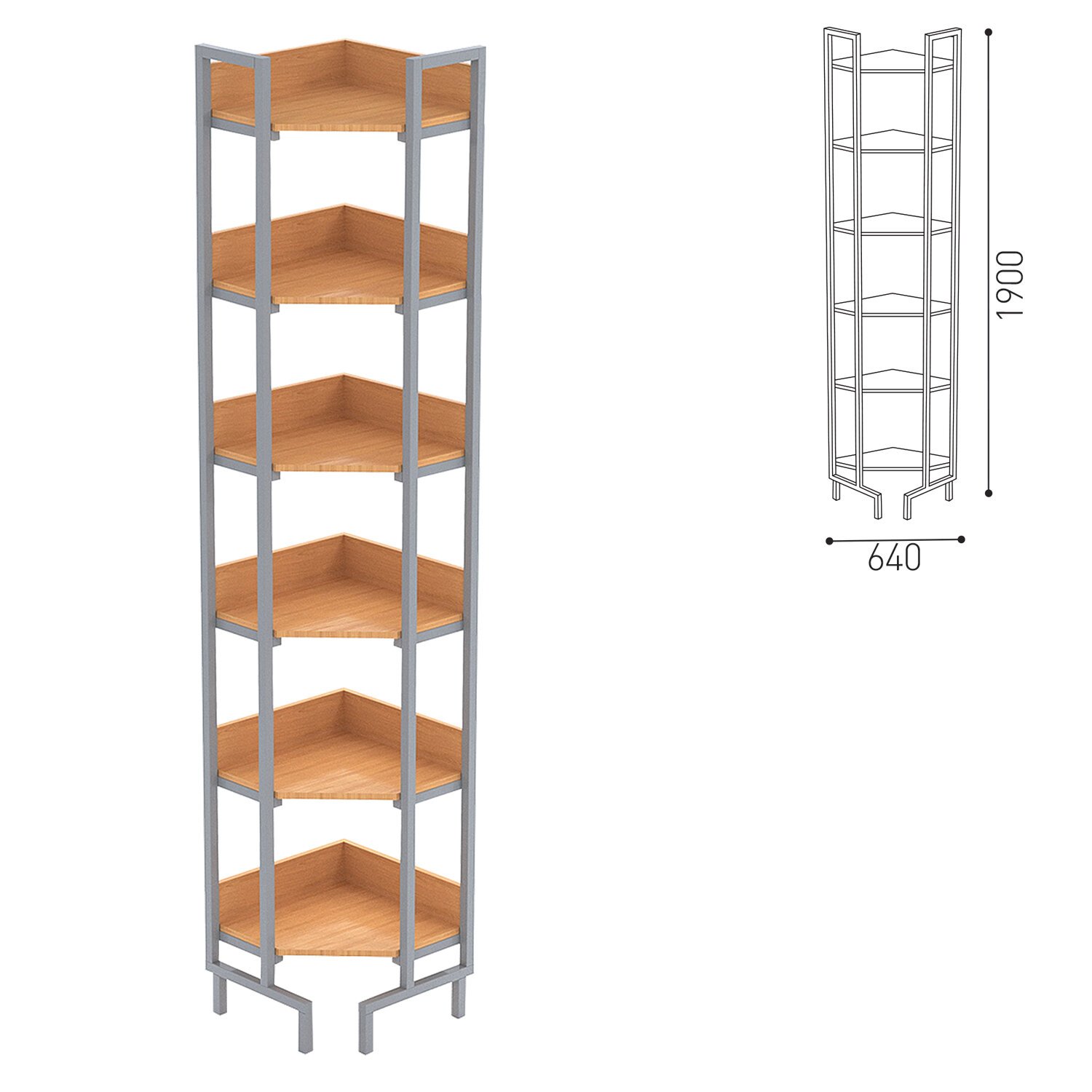 Стеллаж на металлокаркасе угловой 1900х450х450 мм, серый каркас, 6 полок ЛДСП бук