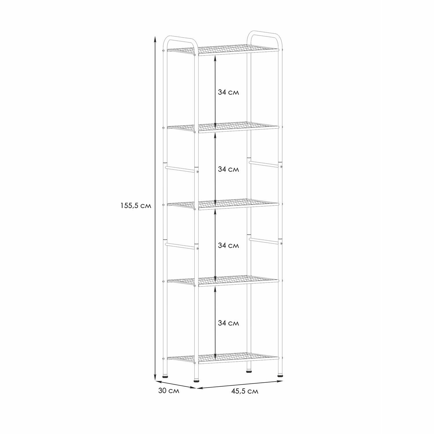 Стеллаж на металлокаркасе "Валенсия-15", 455х300х1555 мм, 5 полок, белый, СТВ15 Б