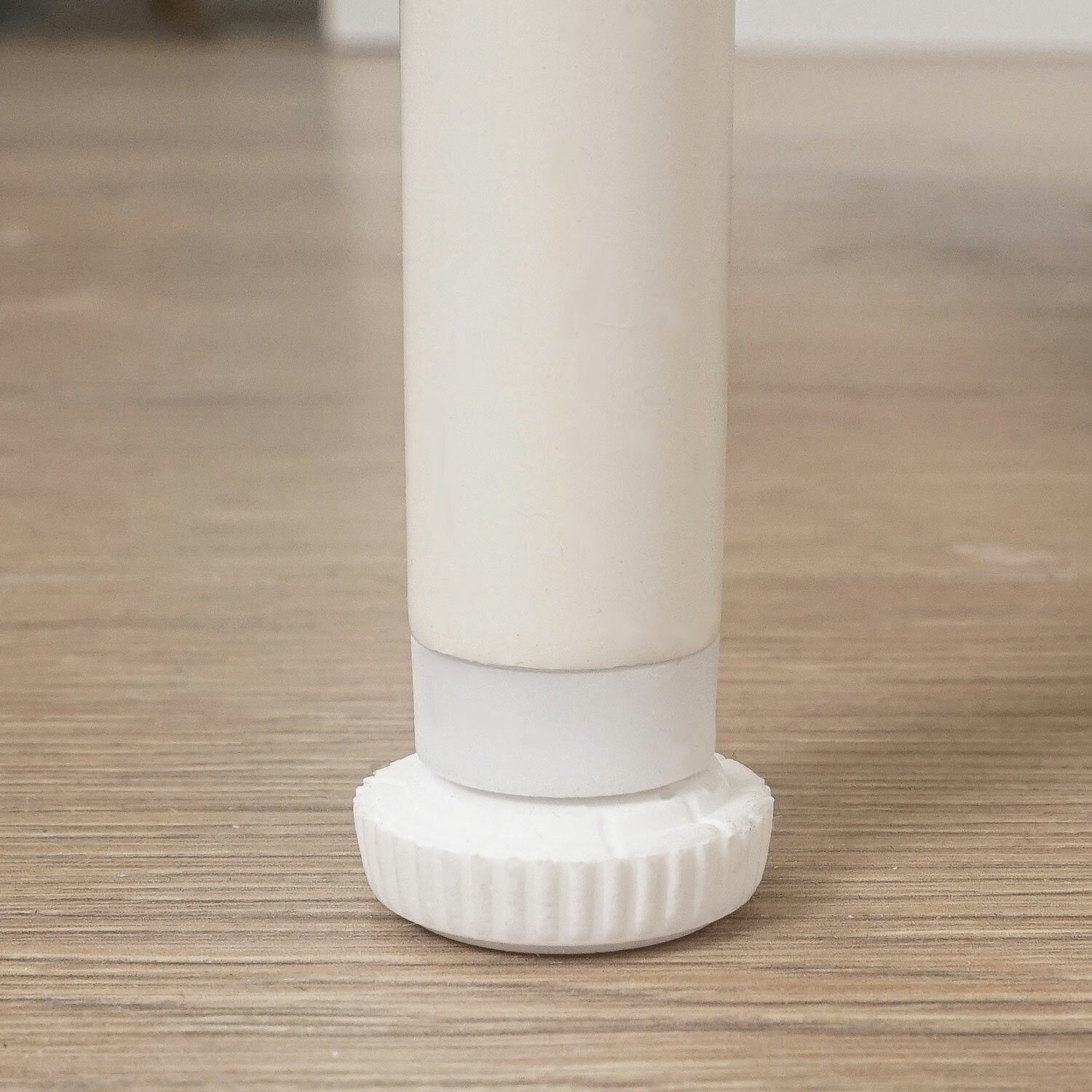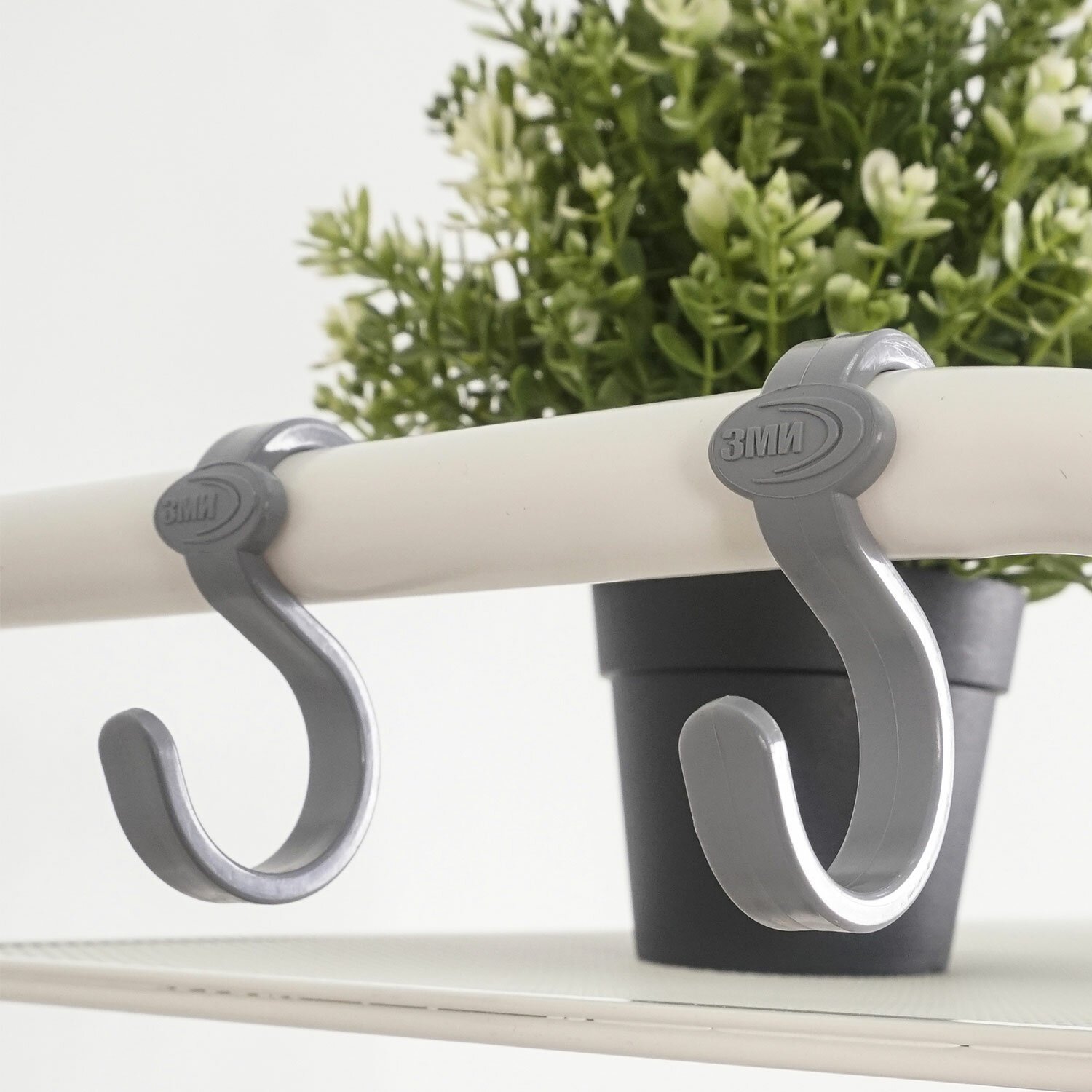 Стеллаж выполнен из прочной металлической трубы диаметром 25 мм и стального листа в мелкую сетку.