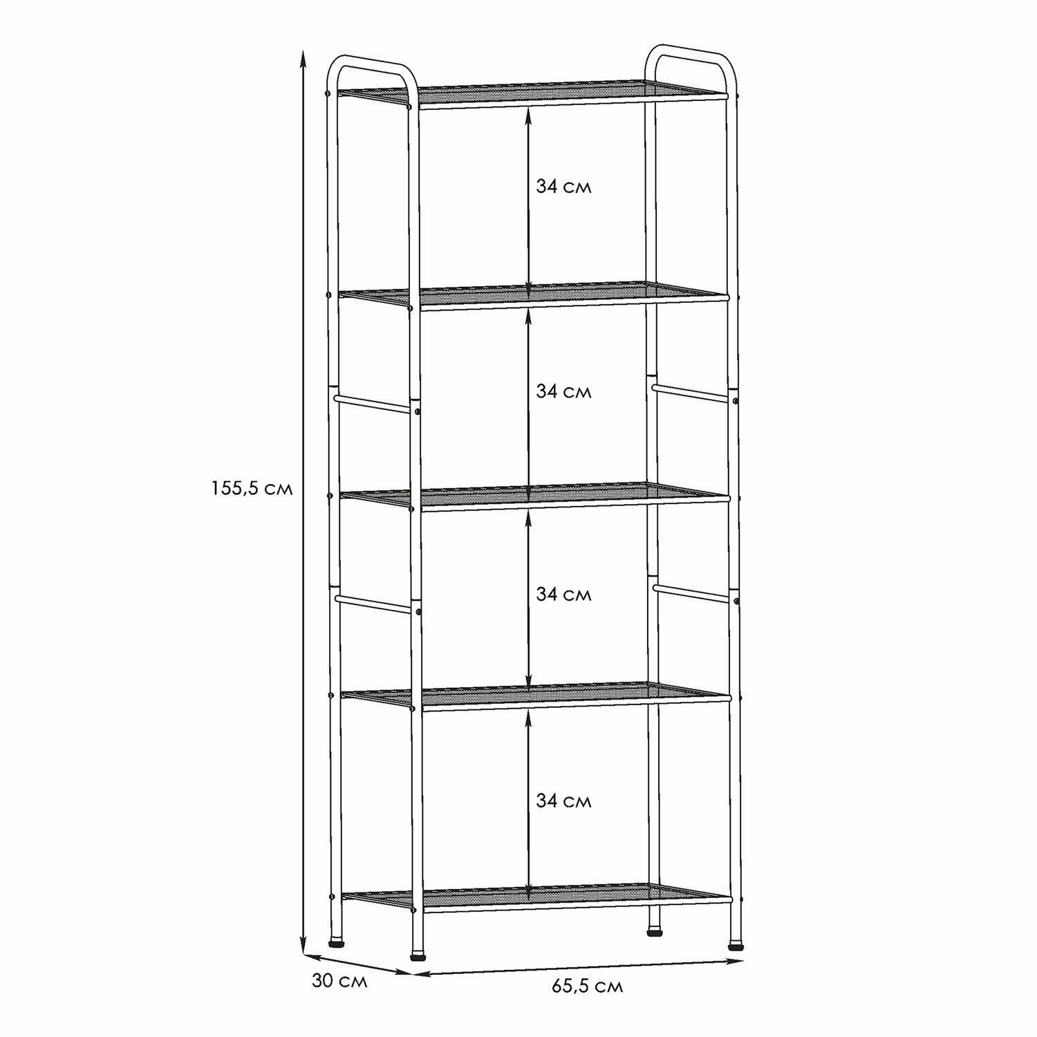 Стеллаж на металлокаркасе "Валенсия-25", 655х300х1555 мм, 5 полок, белый, СТВ25 Б