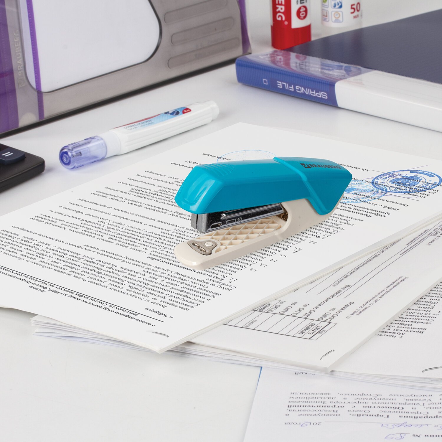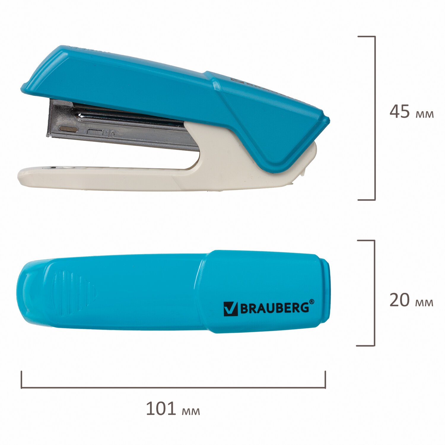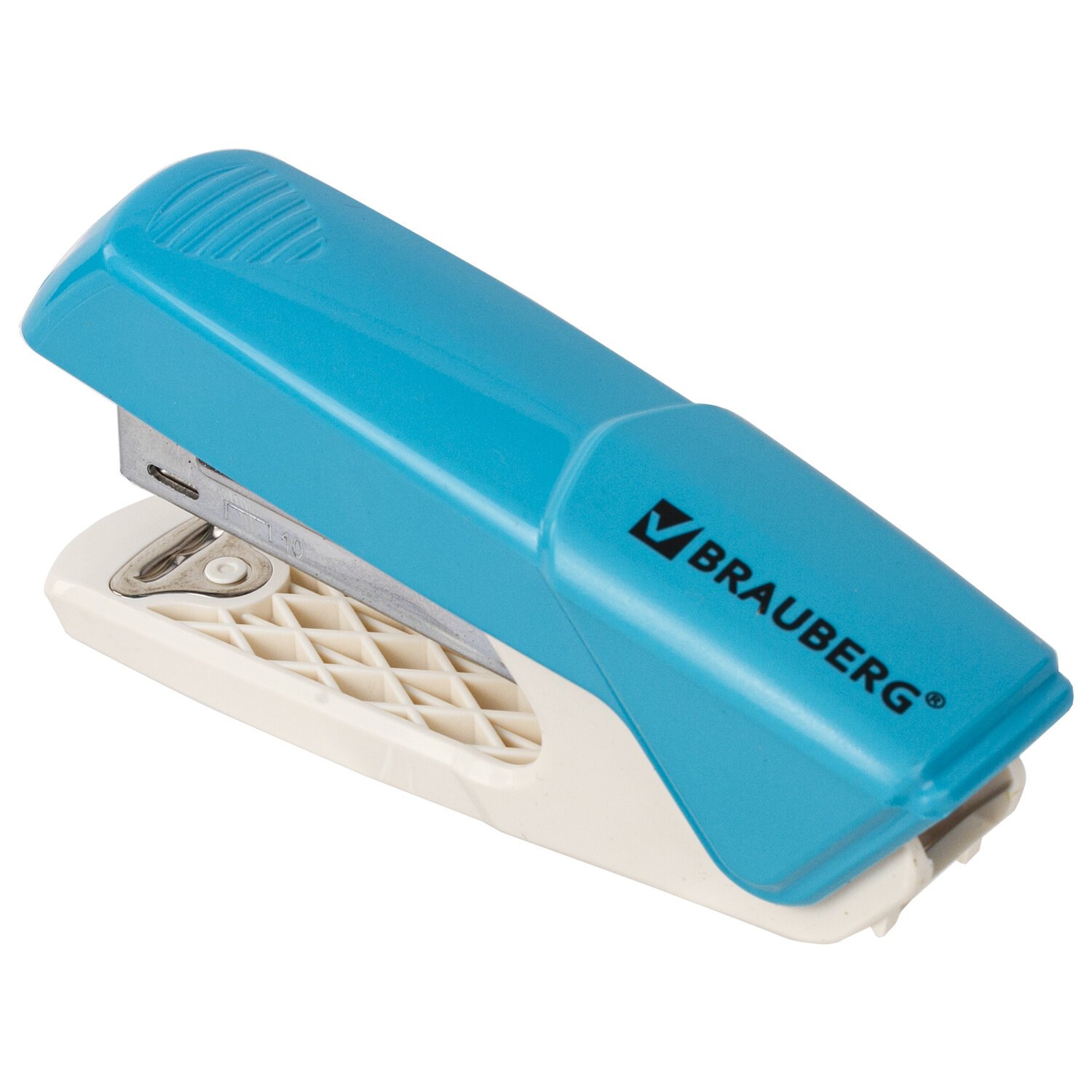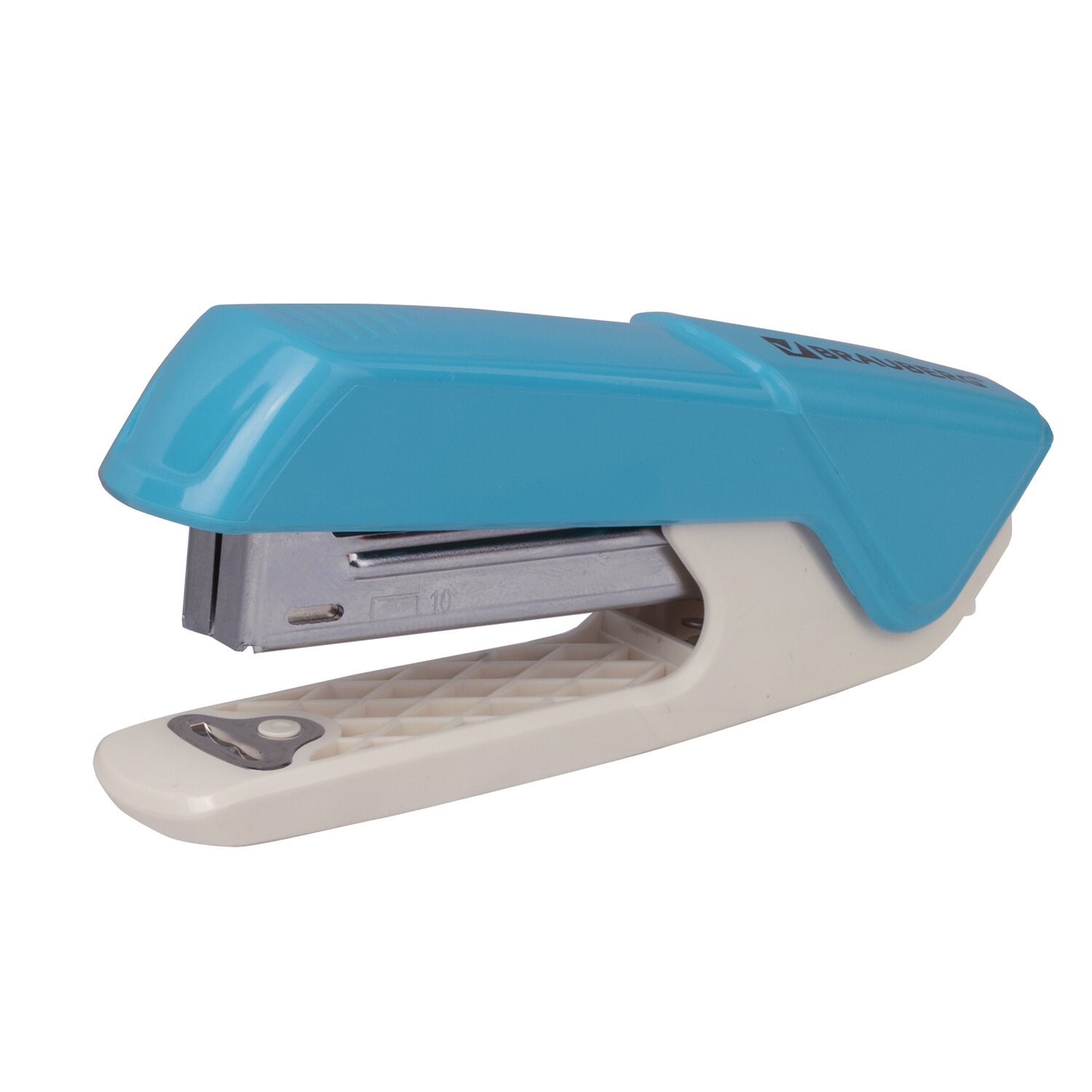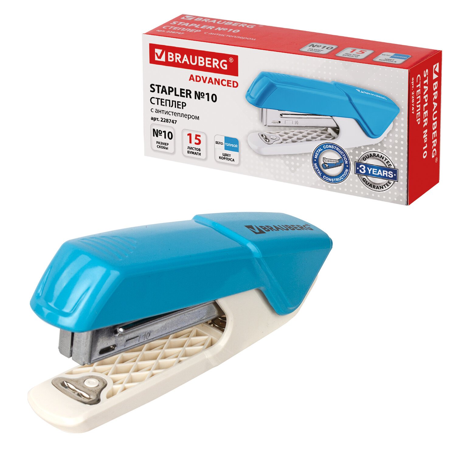 Степлер №10 BRAUBERG "ADVANCED", до 15 листов, с антистеплером, голубой, 228747