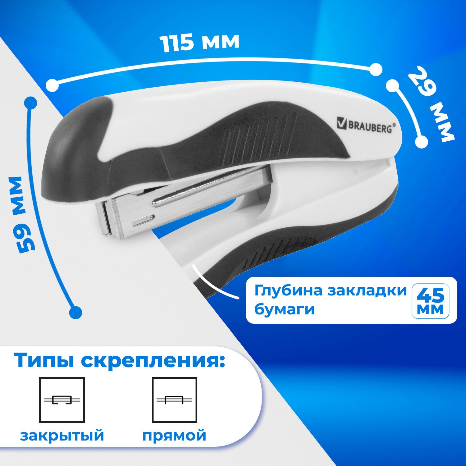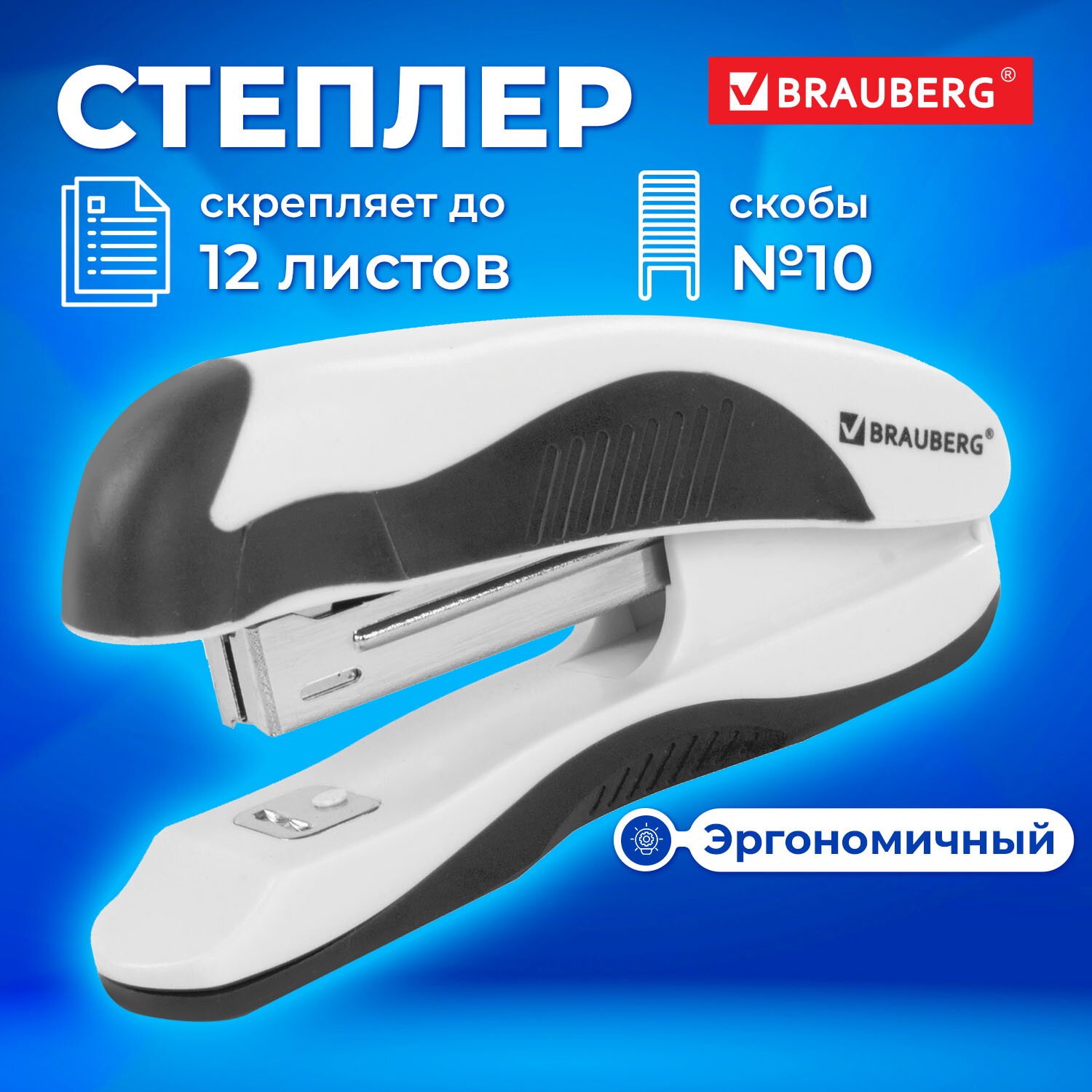 Степлер №10 BRAUBERG "JET PRO", до 12 листов, эргономичный, бело-черный, 228583