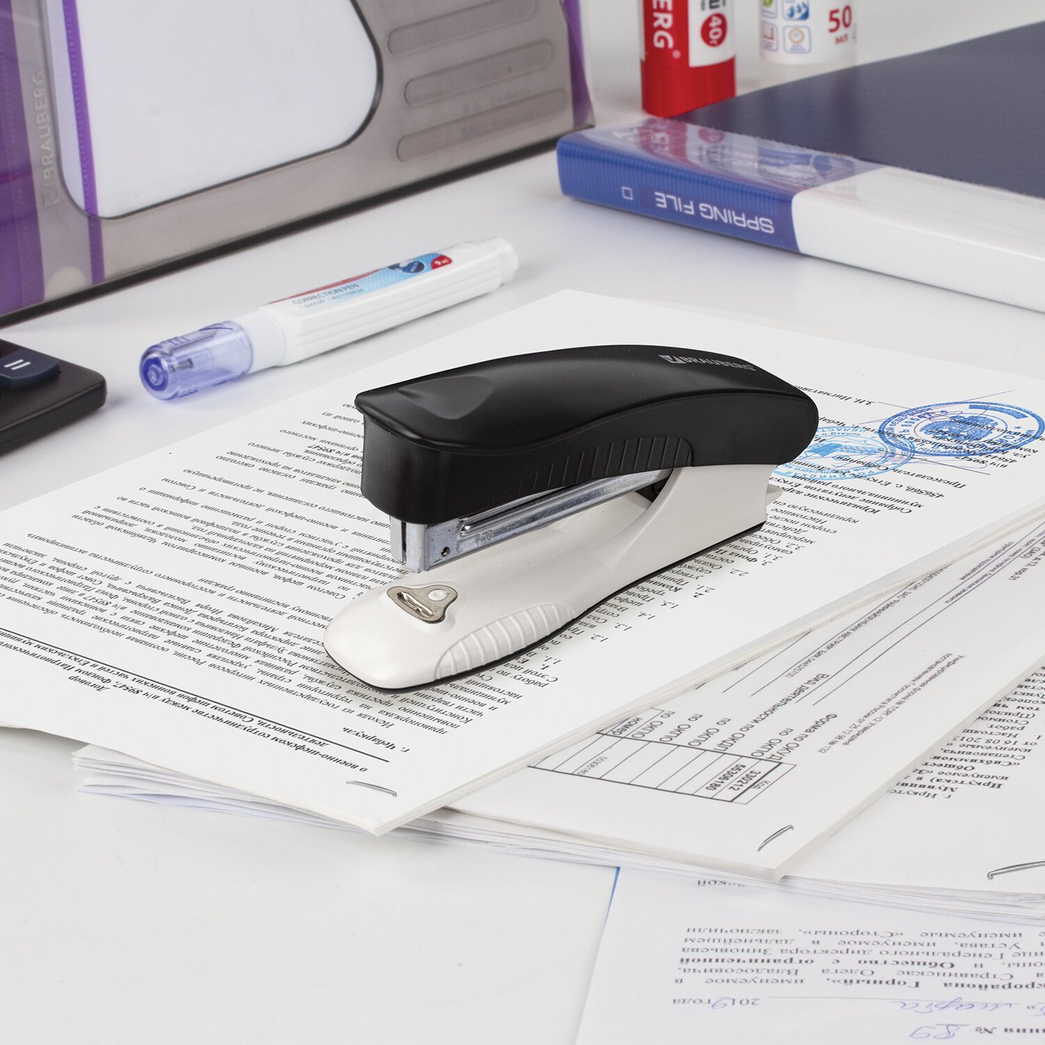Cтеплер с металлическим механизмом BRAUBERG "METROPOLIS" незаменим в работе с большим объемом документов. Полезный аксессуар, который можно встретить на столе офисных работников, школьников и студентов.