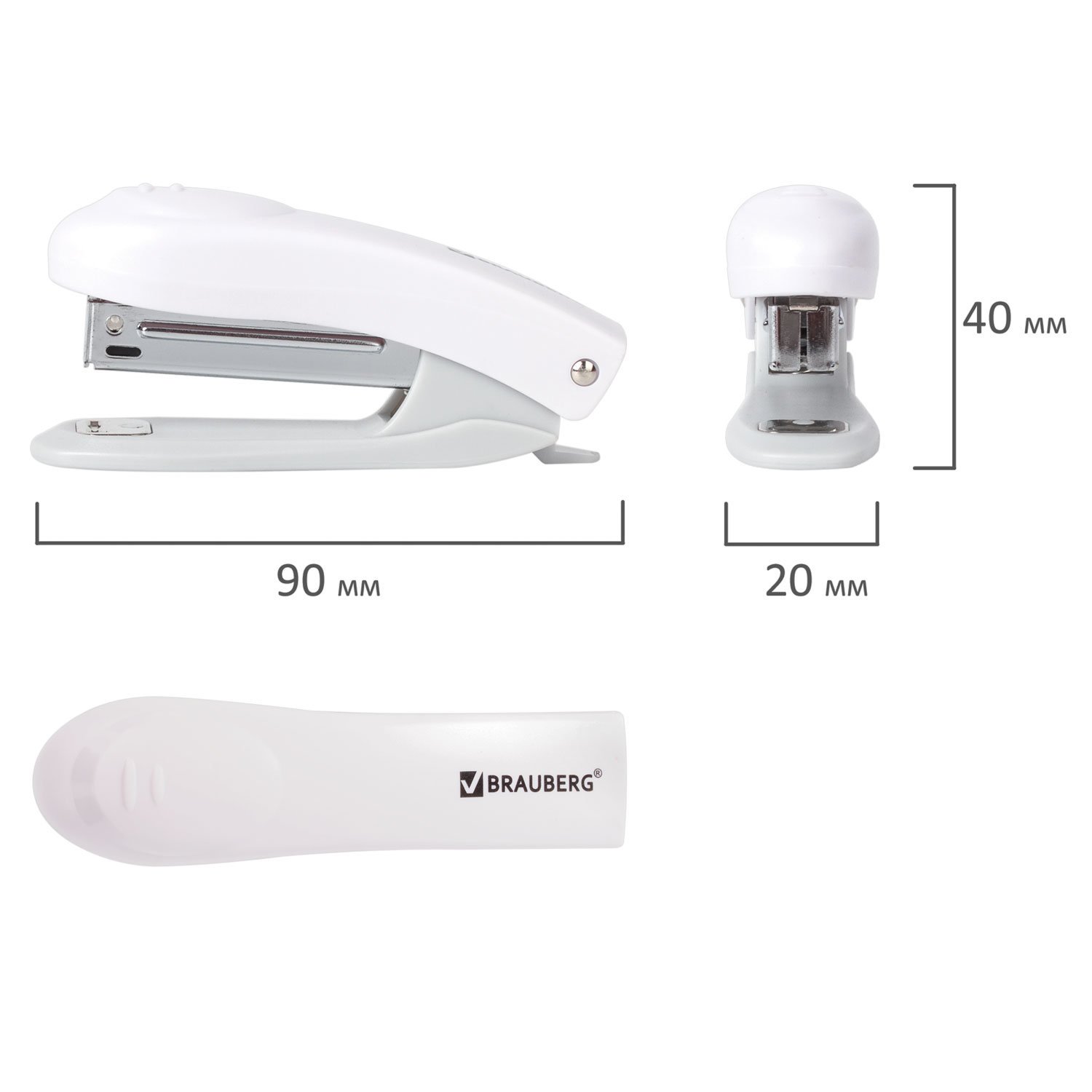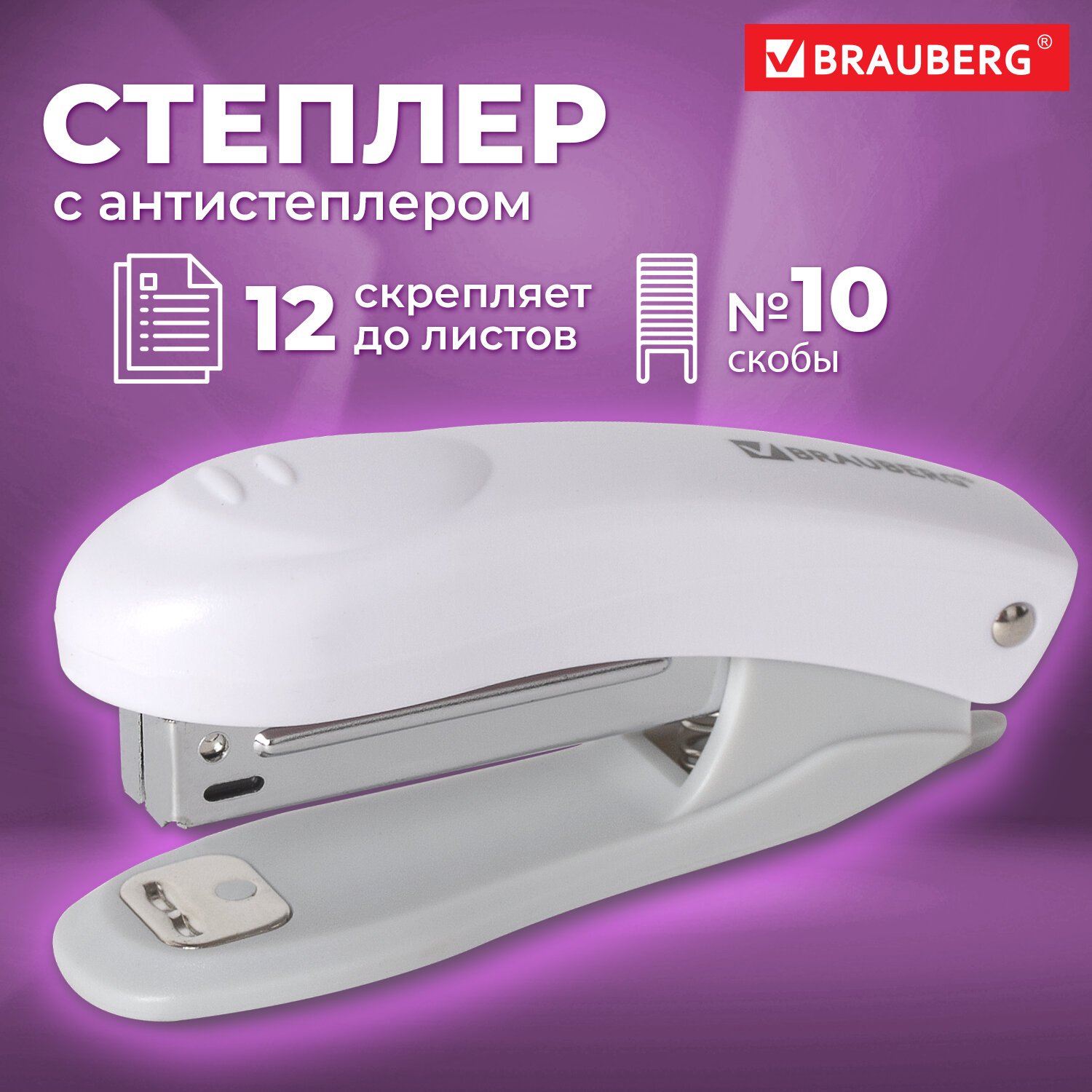 Степлер №10 BRAUBERG "Original", до 12 листов, с антистеплером, белый, 227769